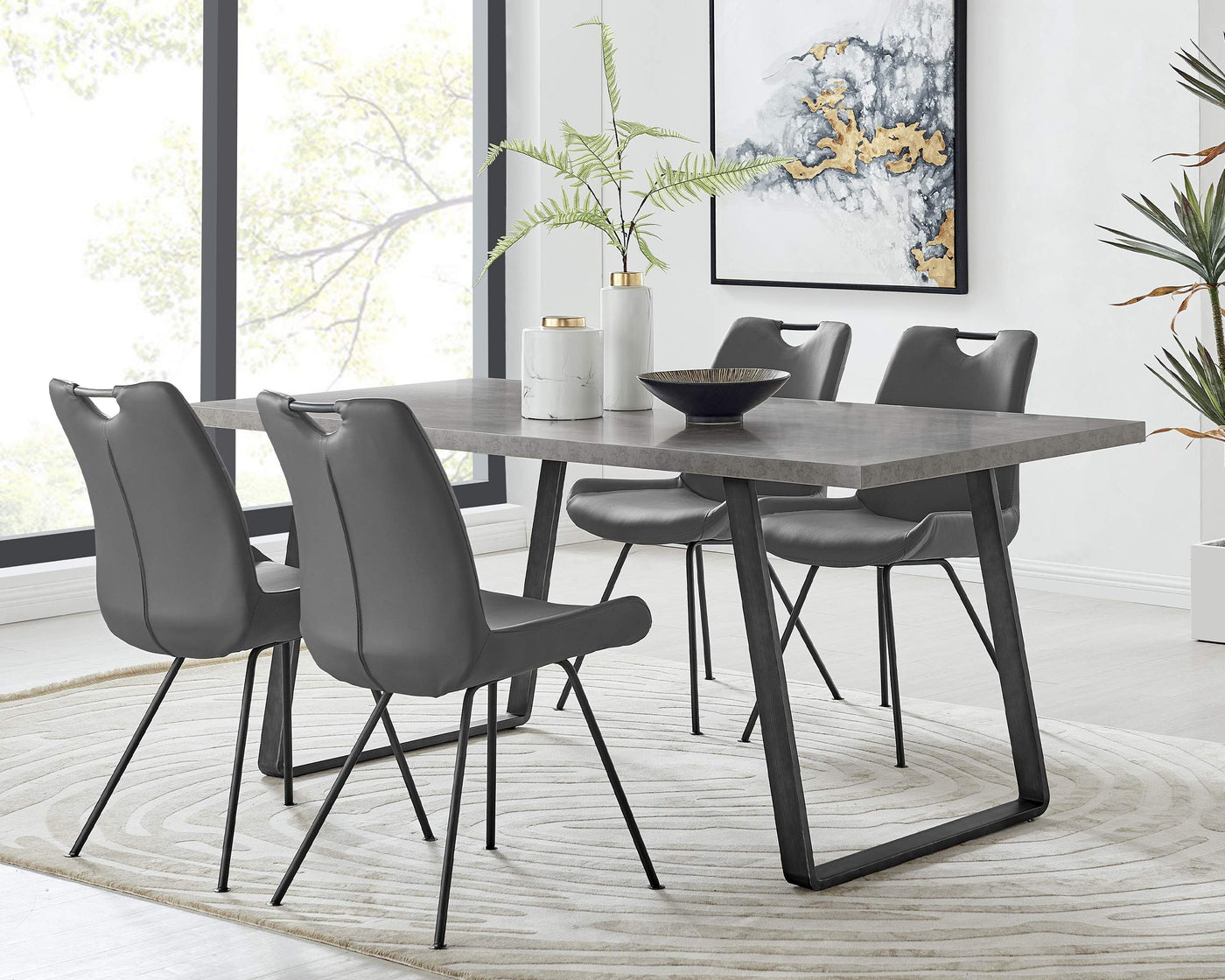 The Armen Living Coronado 5-piece dining set is both simple but elegant look that will complete any contemporary style dining room. The 5-piece set includes: The Coronado dining table, 4 faux leather dining chairs. The table has sleek metal base, complimented with a beautiful Gray concrete laminate top. The Coronado dining chairs are complimented with soft faux leather upholstery for optimum comfort. The Coronado set is practical, yet highly appealing, making it the ideal combination for any contemporary dining room. We stand by the quality, the craftsmanship and the integrity of our product by offer 1-year warranty for all our products.