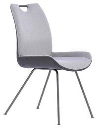 The Armen Living Coronado contemporary armless dining chair is a wonderful choice for any modern household. Ideal for the dining room, but great as additional seating around the home, the Coronado sports a grey powder coat finish metal frame that assures durability without detracting from the chair's stylish appearance. The coronados tall back design includes a handle, facilitating easy transportation from room to room. The chairs 4 leg base includes floor protectors, assuring that the Coronado will not slip on or scratch hardwood floors when moved. Pair the Coronado dining chair with the bench, dining table, and barstool of the same name to create a cohesive home d cor experience. The stylish Coronado is available in two upholstery styles; grey faux leather and pewter fabric. Sold in a set of 2.