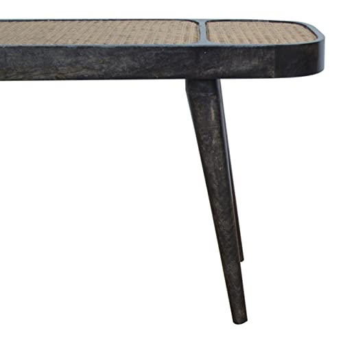 This bench has been beautifully made from 100 solid mango wood in an ash black finish with a handwoven rattan top Featuring rounded corners the bench can be used in a variety of settings such as the bedroom hallway or living room It can be used as part of a collection with the other rattan pieces to complete the look