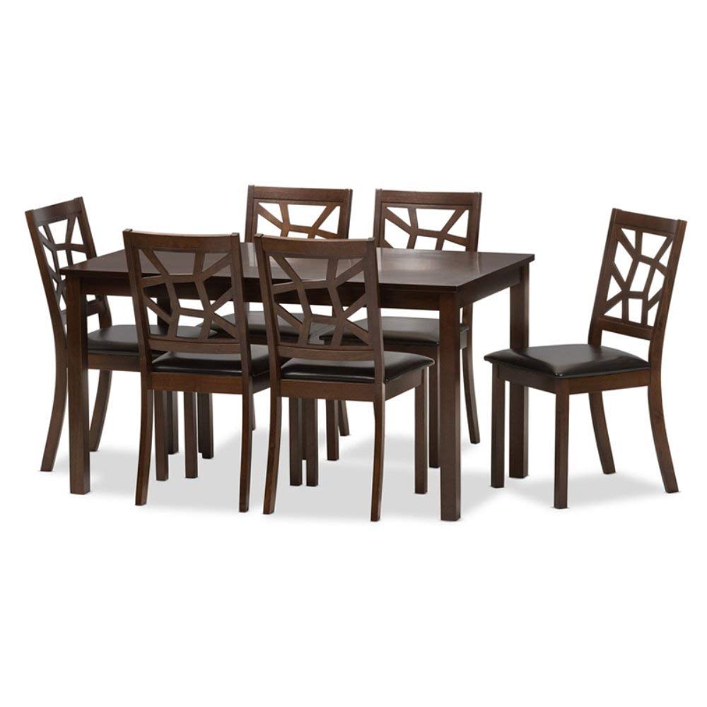 Baxton Studio 7 Piece Mozaika Wood & Leather Contemporary Dining Set, Black