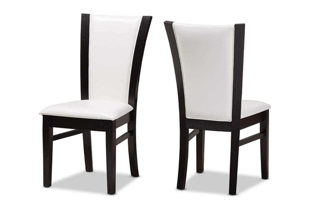 Baxton Studio Adley Modern and Contemporary 5-Piece Dark Brown Finished White Faux Leather Dining Set White//Medium Wood/Contemporary/Table/Faux Leather/Solid Rubber Wood/Foam