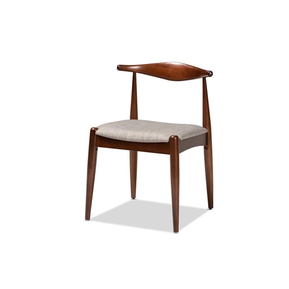 Baxton Studio Aeron Mid-Century Modern Light Gray Fabric Upholstered Walnut Finished Wood 6-Piece Dining Set