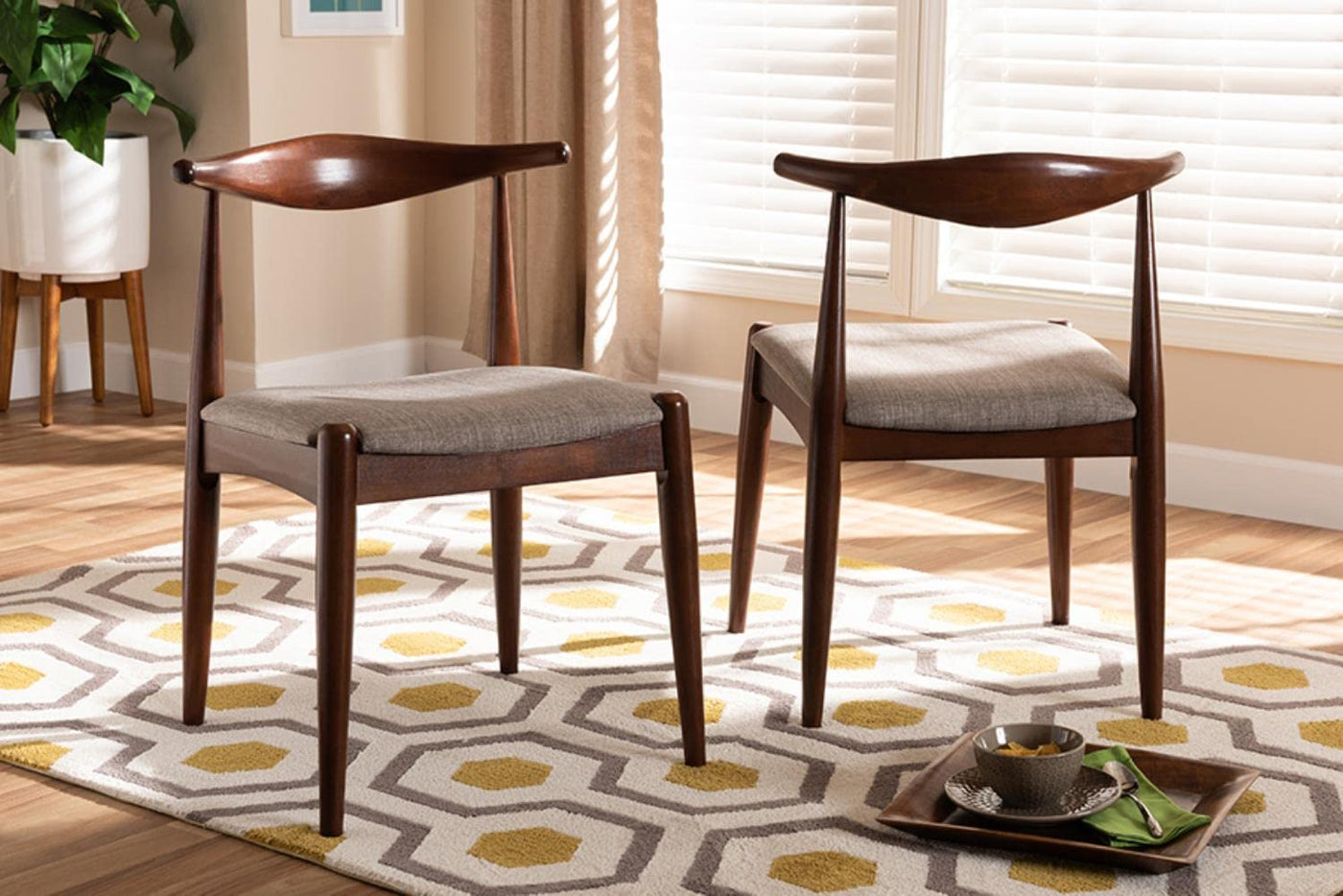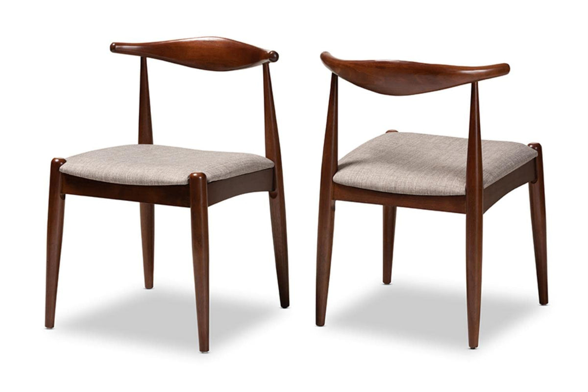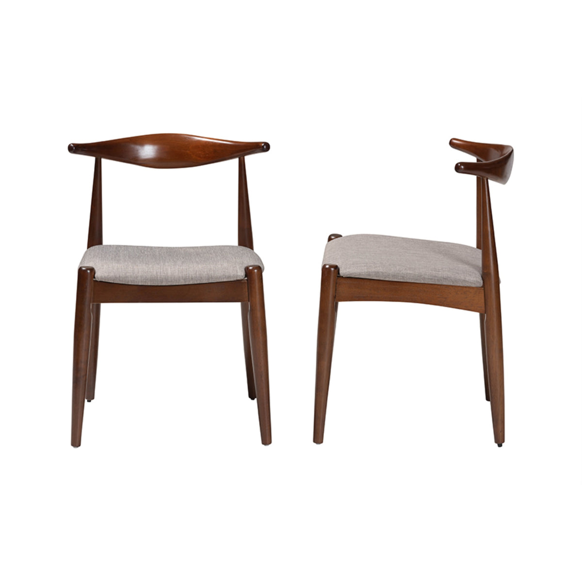 Baxton Studio Aeron Mid-Century Modern Light Gray Fabric Upholstered Walnut Finished Wood Dining Chair Set
