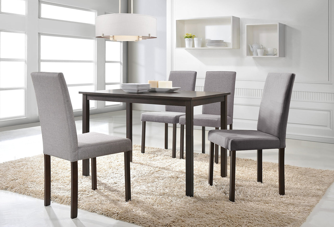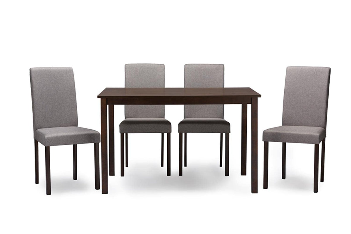 Baxton Studio Andrew Contemporary Espresso Wood Grey Fabric 5-Piece Dining Set