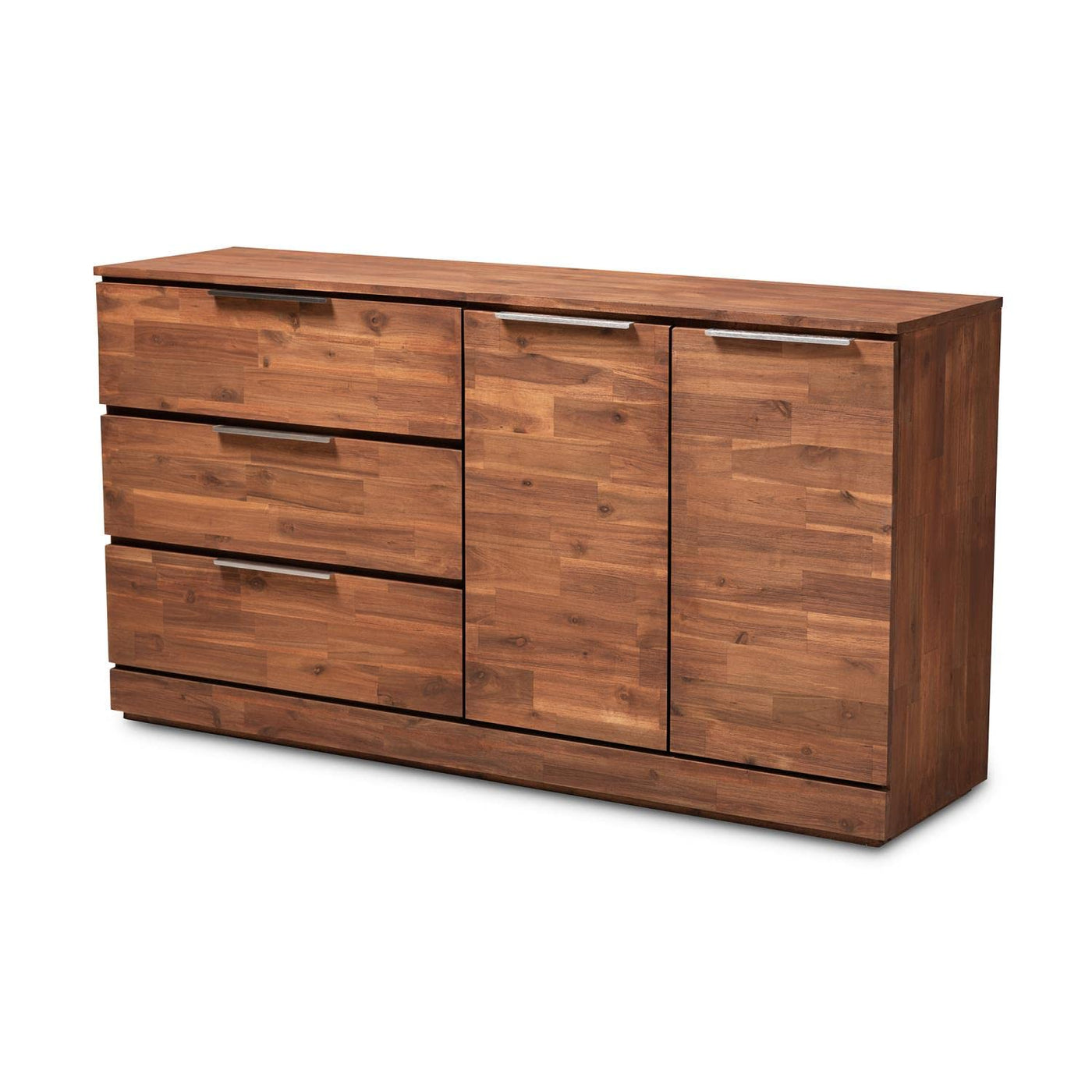 Baxton Studio Austin Modern and Contemporary Caramel Brown Finished 3-Drawer Wood Dining Room Sideboard