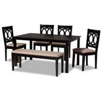 Baxton Studio Bennett Modern and Contemporary Sand Fabric Upholstered and Dark Brown Finished Wood 6-Piece Dining Set
