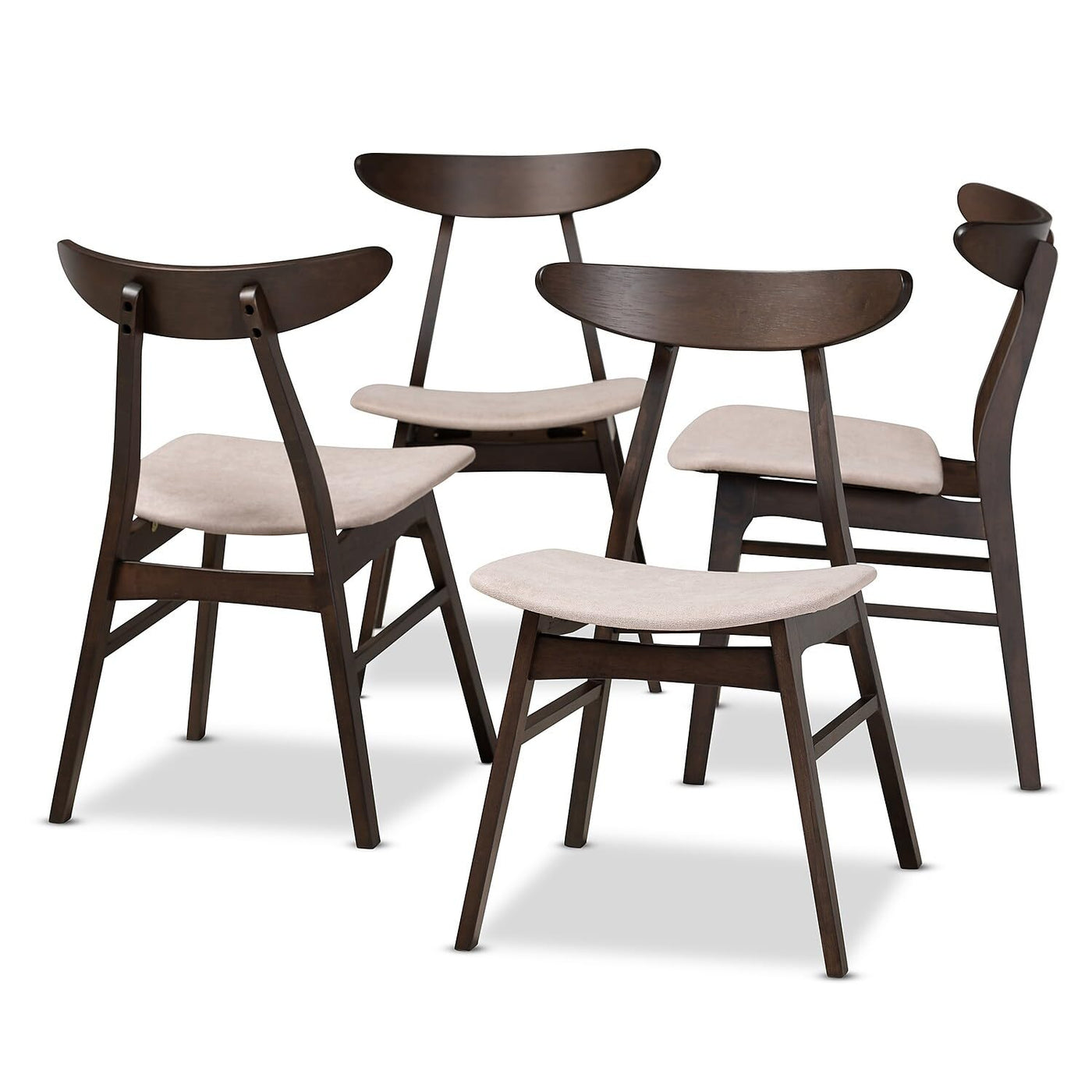 Baxton Studio Britte Mid-Century Modern Beige Fabric Upholstered Dark Oak Brown Finished 4-Piece Wood Dining Chair Set Set