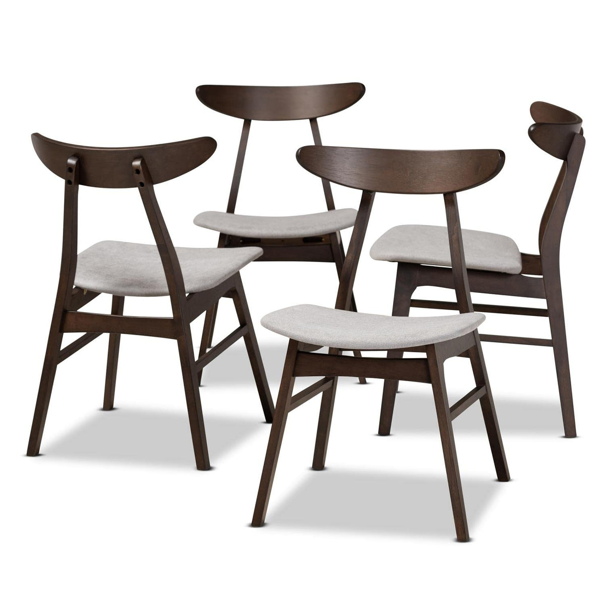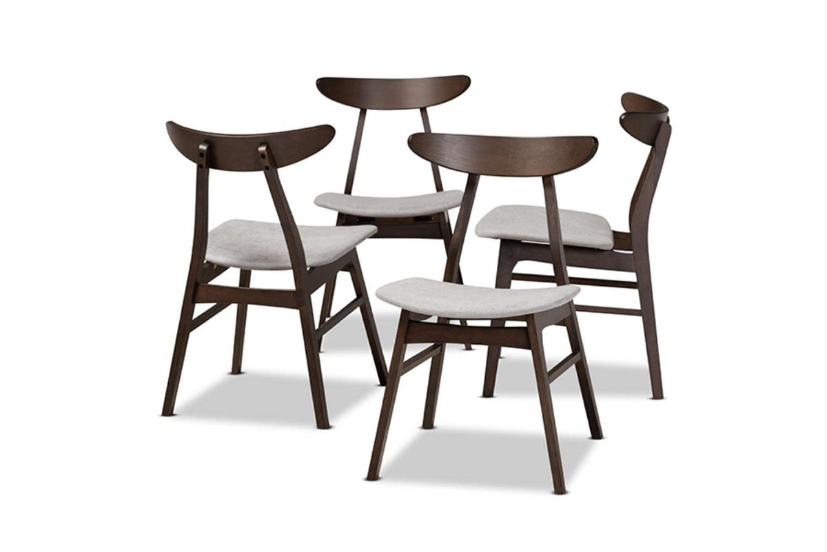 Baxton Studio Britte Mid-Century Modern Light Grey Fabric Upholstered Dark Oak Brown Finished 4-Piece Wood Dining Chair Set Set