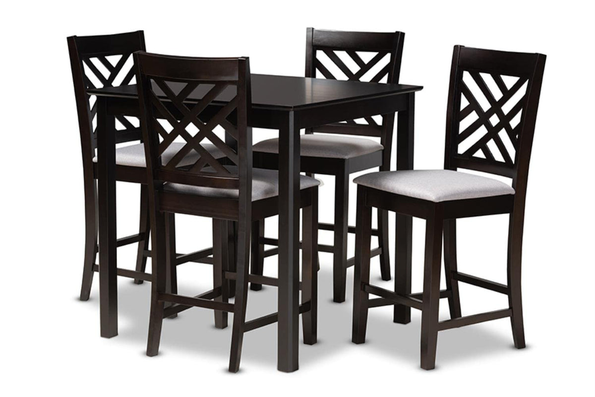 Baxton Studio Caron Modern and Contemporary Gray Fabric Upholstered Espresso Brown Finished 5-Piece Wood Pub Set