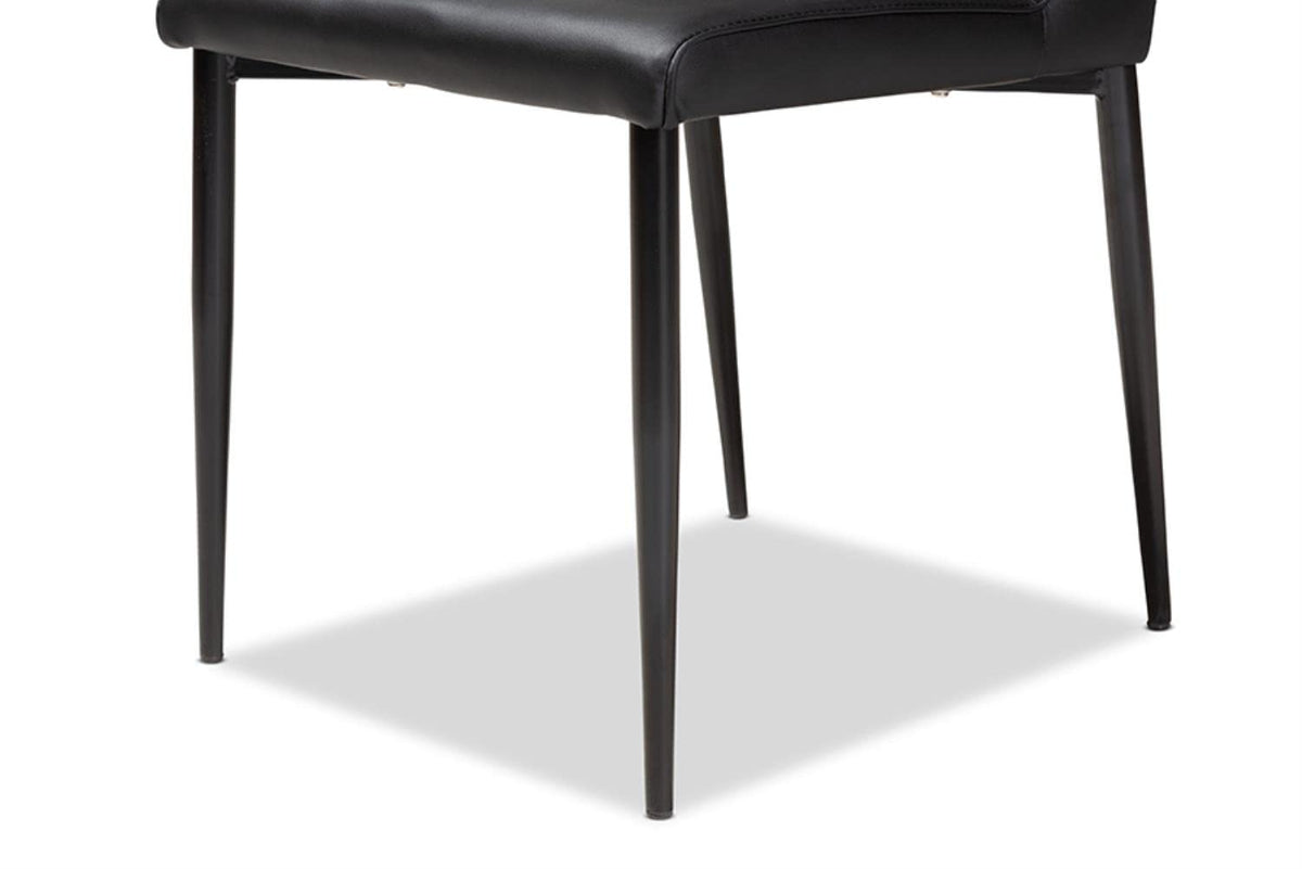 Add charm and minimalistic chic to your space with the Chandelle dining chair. The modern and contemporary-inspired design is simple and versatile. The Chandelle is foam-padded for comfort and upholstered in black faux-leather. The legs of the chair are sturdy metal, finished in black. The Chandelle features a rectangular design, with a slightly reclined chair back to encourage hours of comfortable seating. The chair can add the finishing touches to your dining room, reception area, or other shared space. Made in China, the Chandelle requires assembly.Features Modern and contemporary dining chairFaux leather upholsteryBlack finished metal legsRectangular silhouetteSlightly reclined chair backAssembly requiredStyle: ModernColor: BlackMaterial: Faux Leather,MDF,FoamProduct Size: Dimensions: 37.99' High x 18.11' Wide x 24.8' Deep; Seating Dimensions: 18.11' High (from Floor) x 24.8' Wide x 18.11' Deep; Back: 22.24' High; Legs: 16.02' High