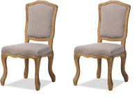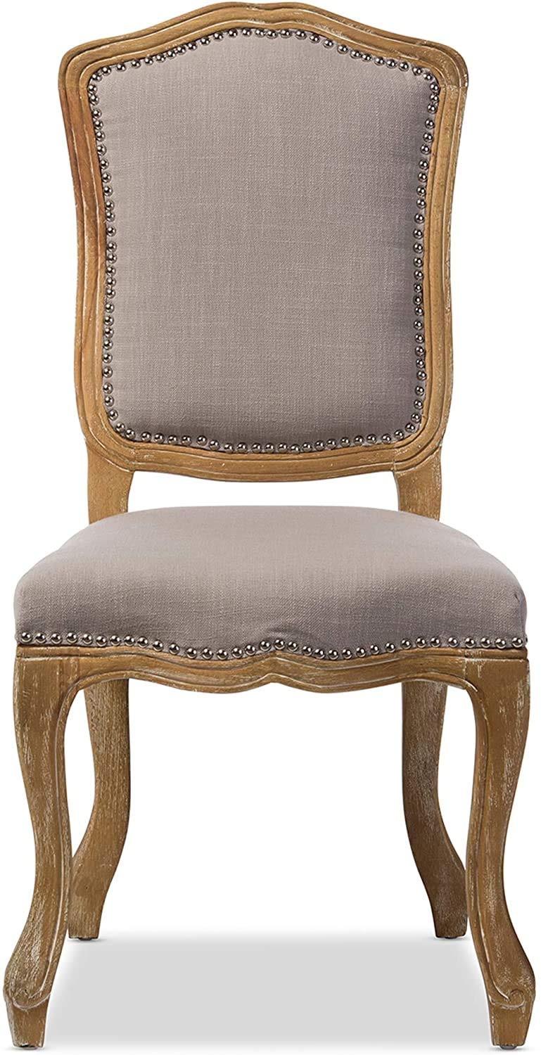 Baxton Studio Chateauneuf French Vintage Cottage Weathered Oak Linen Upholstered Dining Side Chair, Medium, Beige (Set of 2)