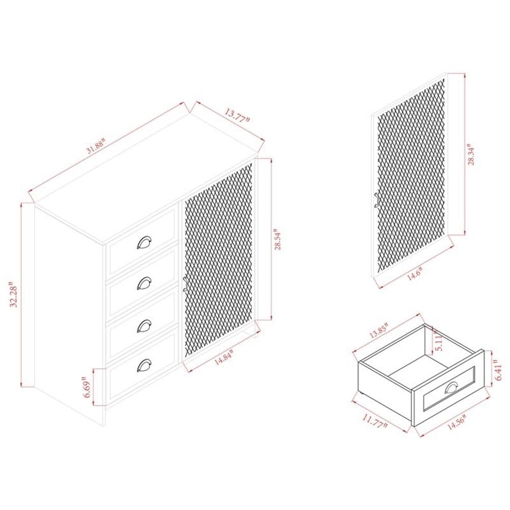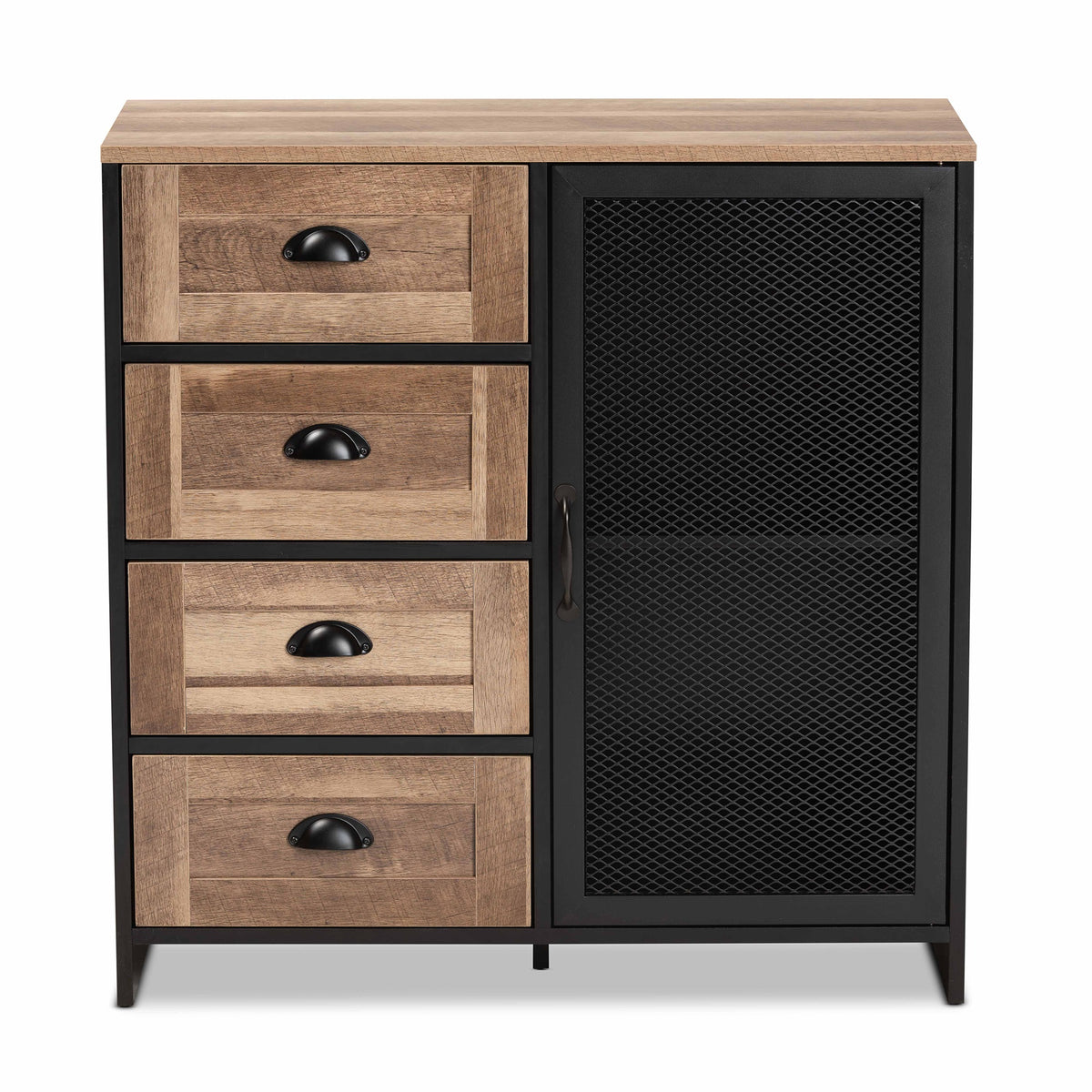 Generate An Atmosphere Of Warmth In Your Space With The Rustic Character Of The Connell Sideboard. Made In China, This Stunning Piece Is Comprised Of A Sturdy Wood Frame Embellished With Metal Accents. Four Drawers Offer Ample Space To Organize Utensils, While Two Shelves Located Behind The Door Support Larger Cookware. The Connell Requires Assembly And Features Smooth, Rounded Handles That Exude Industrial Charm. With An Efficient, Streamlined Design, The Connell Sideboard Stand Elevates Any Space. Overall Dimensions: 32.30'' High X 31.50'' Wide X 13.80'' Deep; Drawer Dimensions: 13.85'' Wide X 11.77''Deep X5.11'' High; Storage Behind Door Dimensions: 15.80'' Wide X13.80'' Deep X28.50'' High; Door Dimensions: 14.60''Long X 28.30'' Wide