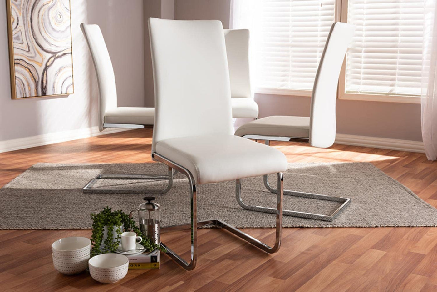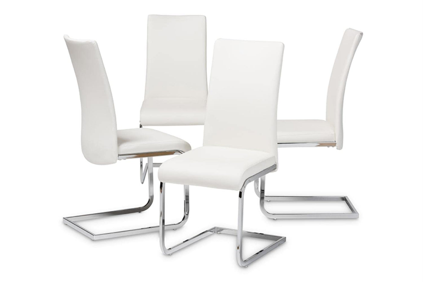 Baxton Studio Cyprien Modern and Contemporary White Faux Leather Upholstered Dining Chair (Set of 4)