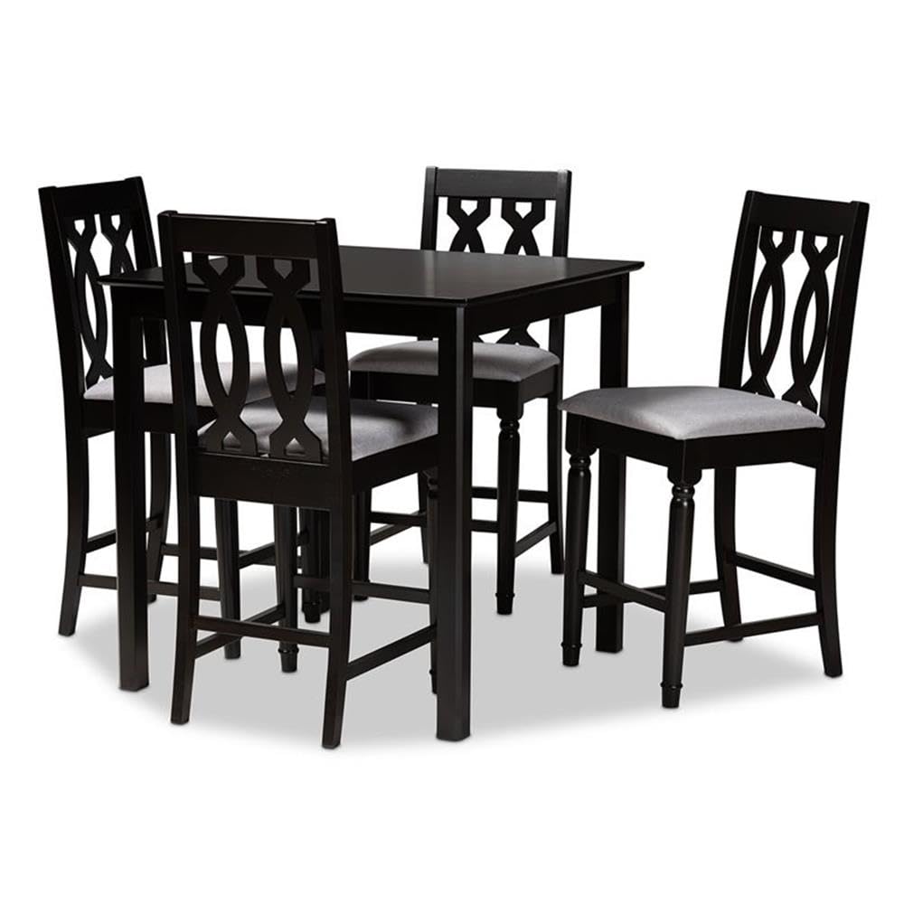 Baxton Studio Darcie Modern and Contemporary Grey Fabric Upholstered Espresso Brown Finished 5-Piece Wood Pub Set
