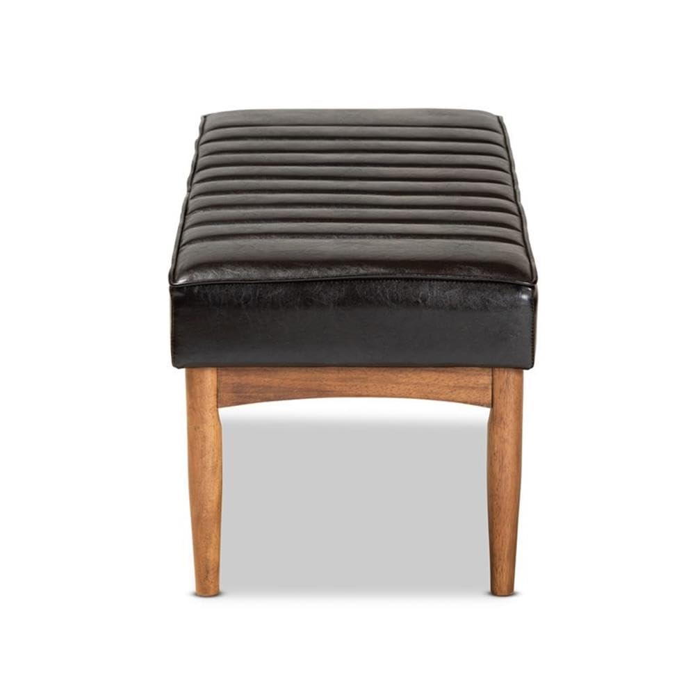 Baxton Studio Daymond Mid-Century Modern Dark Brown Faux Leather Upholstered and Walnut Brown Finished Wood Dining Bench
