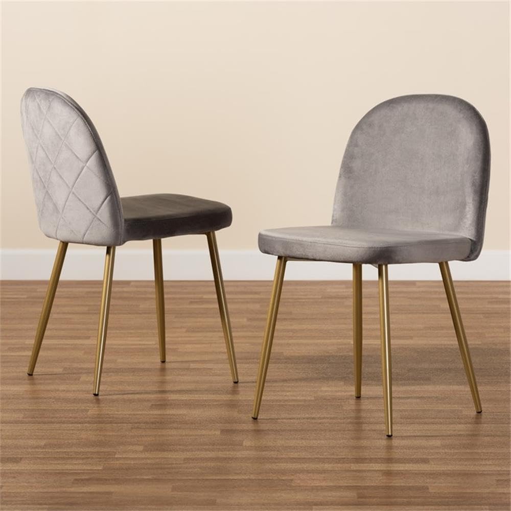 Baxton Studio Fantine Modern Luxe and Glam Grey Velvet Fabric Upholstered and Gold Finished Metal 2-Piece Dining Chair Set