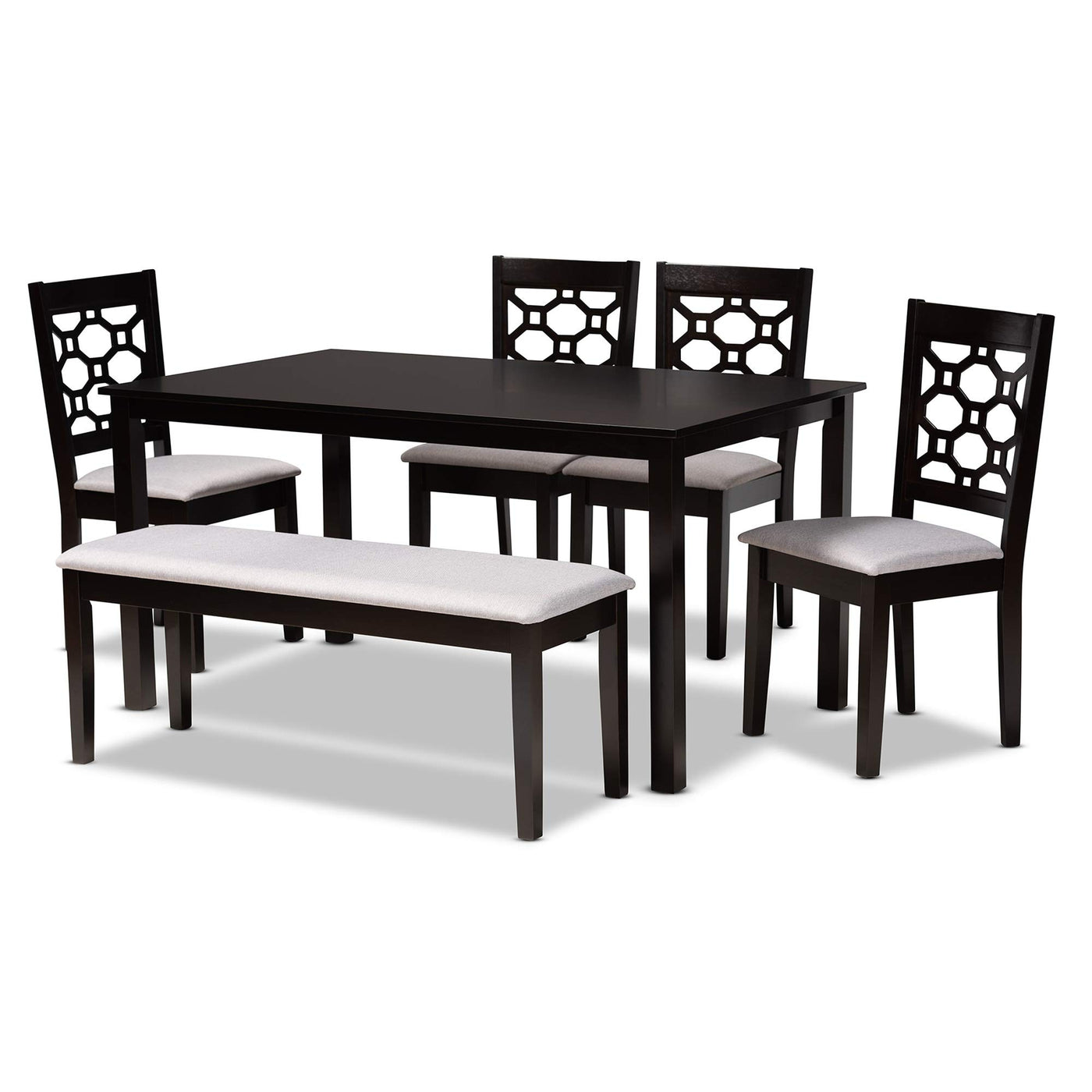 Baxton Studio Gabriel Modern and Contemporary Grey Fabric Upholstered and Dark Brown Finished Wood 6-Piece Dining Set