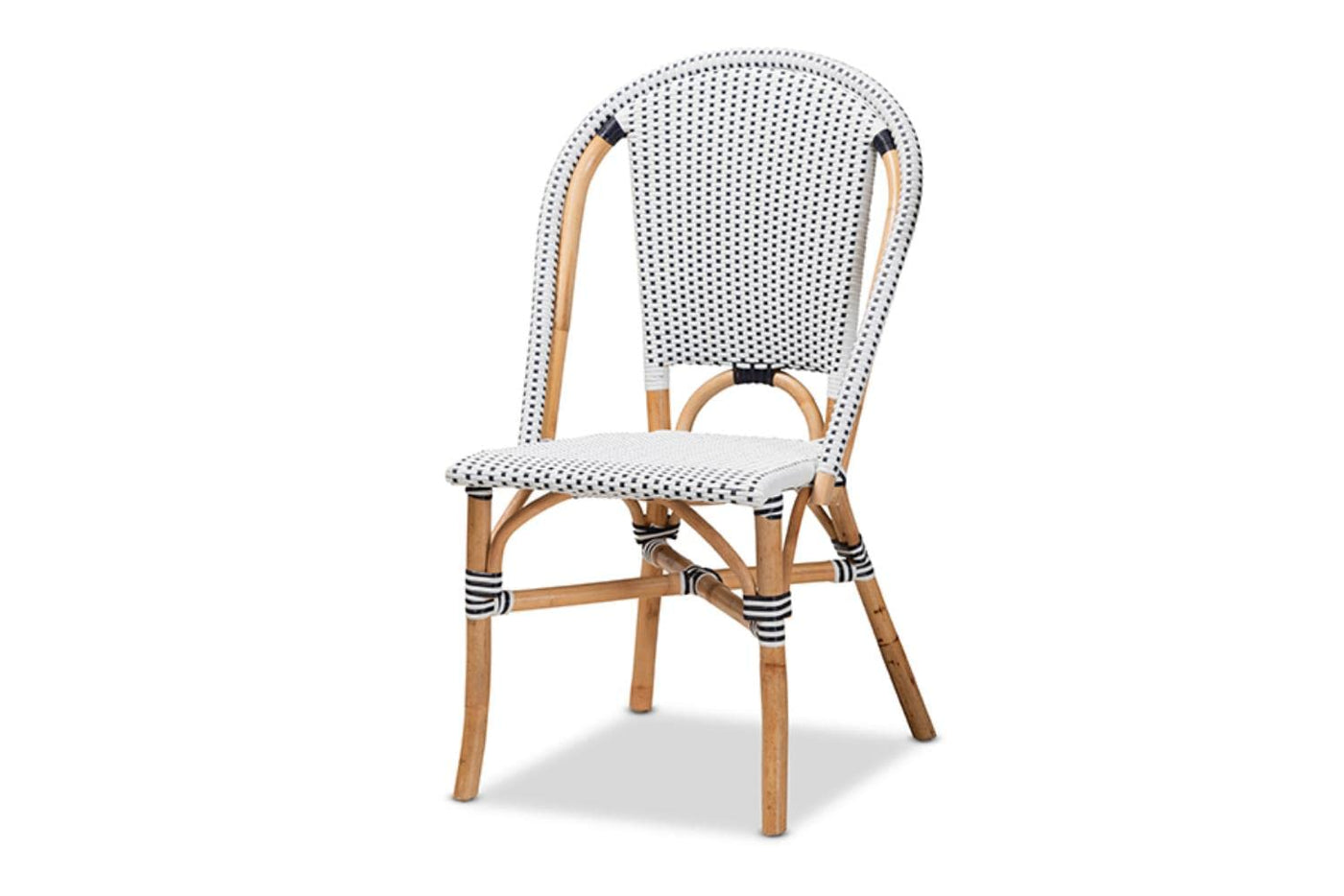 Baxton Studio Genica Classic French Black and White Weaving and Natural Brown Rattan 5-Piece Dining Set