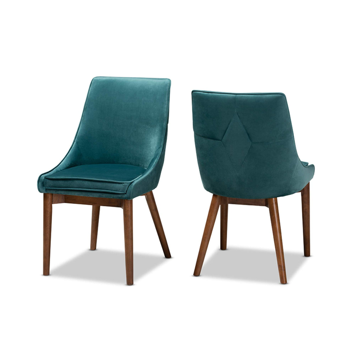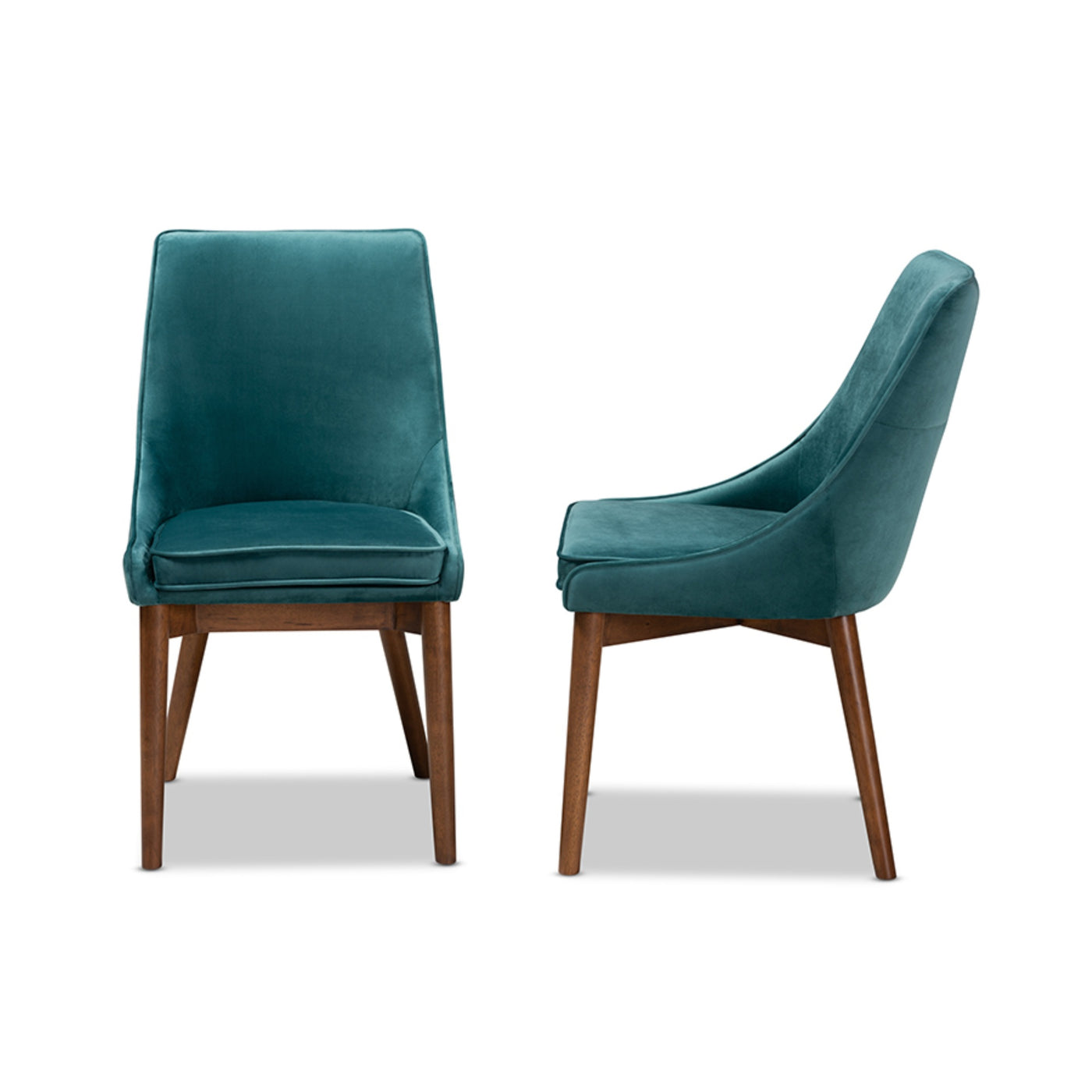 Baxton Studio Gilmore Modern and Contemporary Teal Velvet Fabric Upholstered and Walnut Brown Finished Wood 2-Piece Dining Chair Set Set
