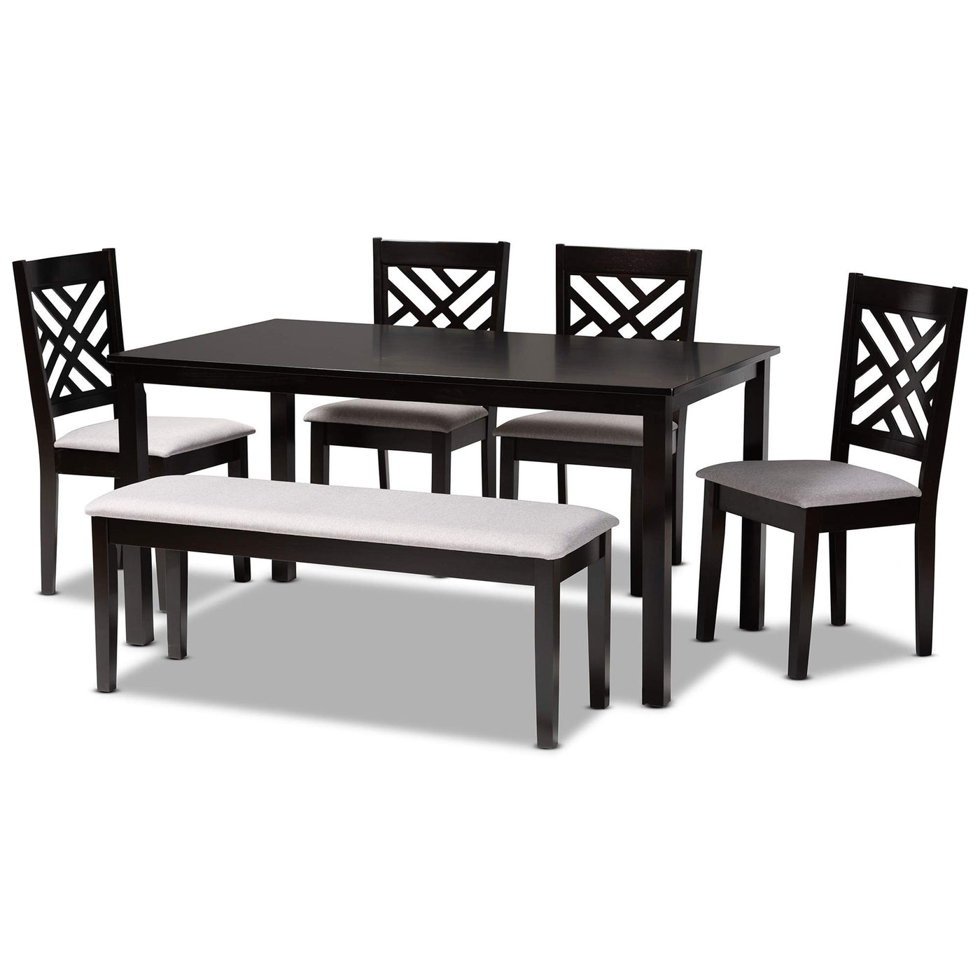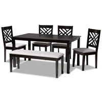 Baxton Studio Gustavo Modern and Contemporary Grey Fabric Upholstered and Dark Brown Finished Wood 6-Piece Dining Set