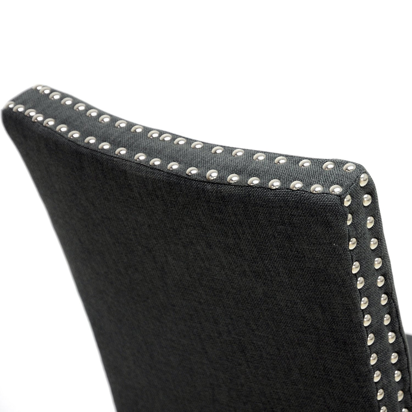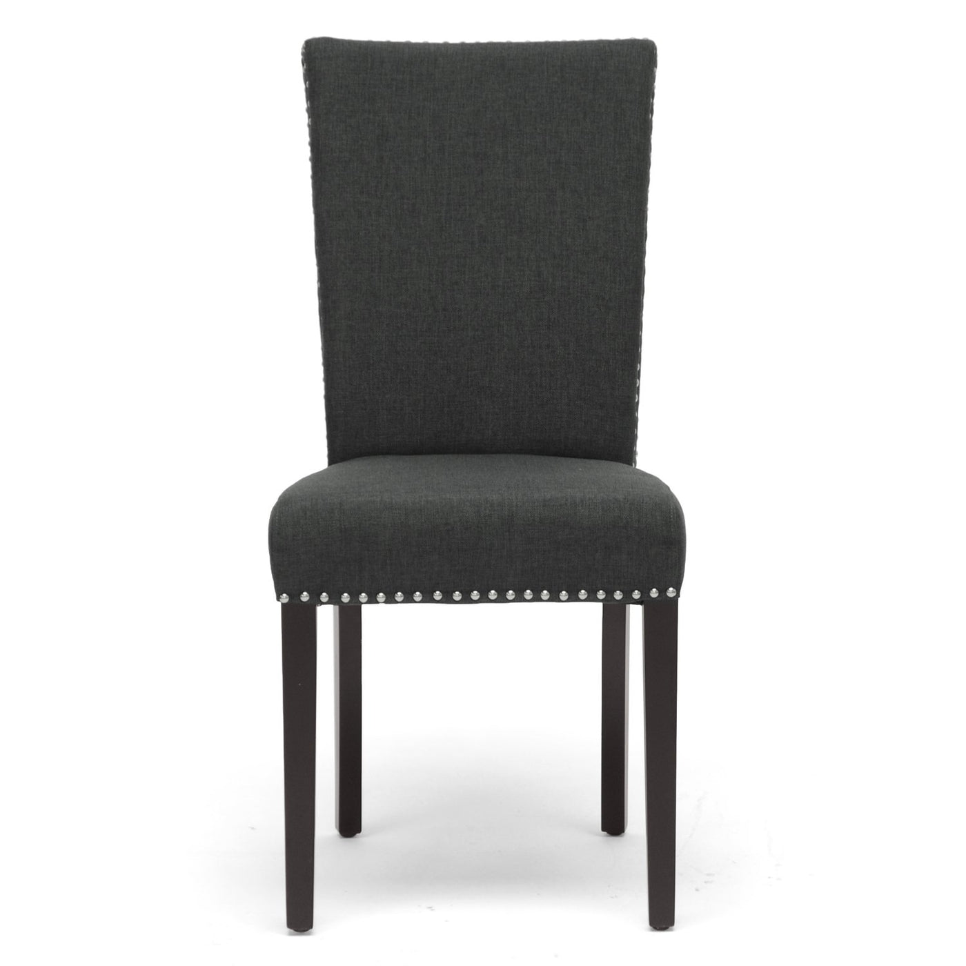 Descriptionno Frills, No Fuss, But Plenty Of Fashion. The Simplistic Harrow Gate Dining Chairs Have The Straight Line-Inspired Design Of Popular Modern Style But Comforting Dark Charcoal Gray Linen Upholstery And Traditional Silver Nail Head Trim Along Most Outer Edges. This Set Of Two Chairs Is Made With Birch Frames And Foam Cushioning (Ca117 Flame Retardant). Completing Your New Dining Room Furniture Set Are Black Lacquer Legs With Non-Marking Feet. Made In China, The Modern Chairs Required Assembly And Should Be Spot Cleaned. Product Dimension: 18.5"W X 23"D X 39"H Seat Dimension: 18.5"W X 16.75"D X 20.5"H.