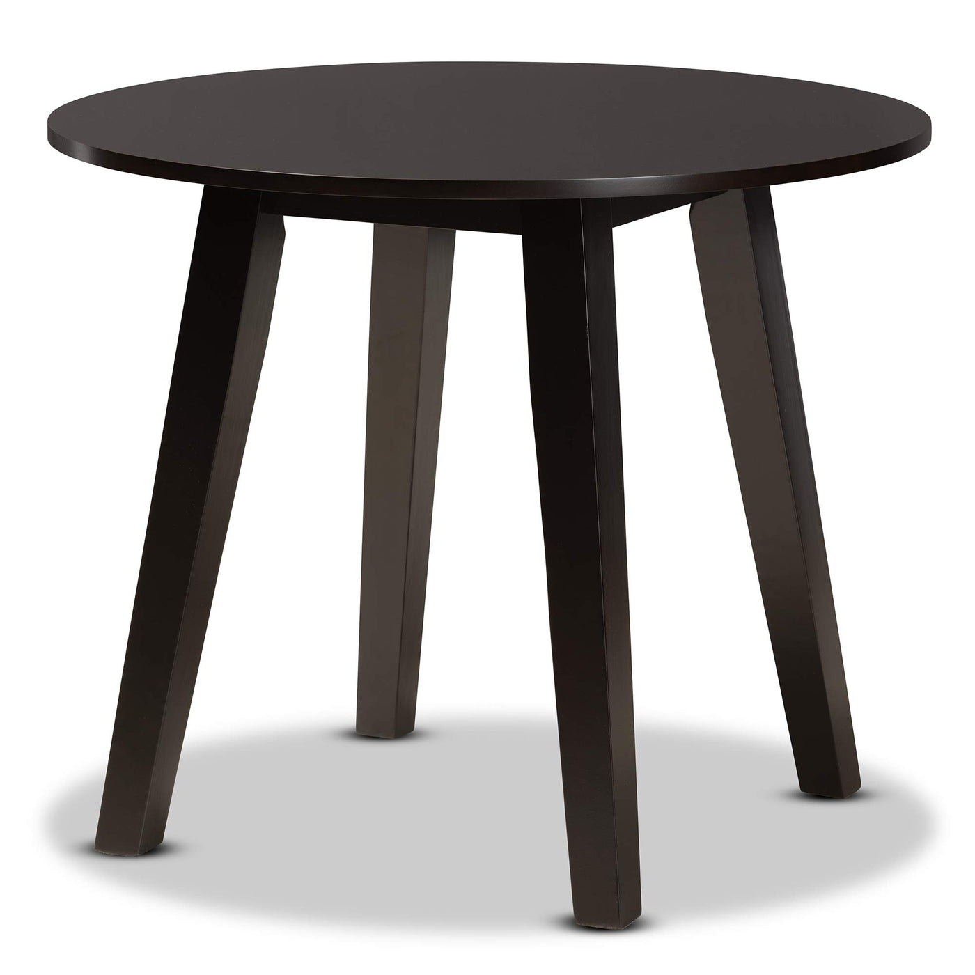 Elegance and comfort come together with the Heidi dining set. Made in Malaysia, the Heidi includes four chairs and one table constructed from sturdy wood finished in a rich dark brown. Each chair is fitted with a foam-padded cushion upholstered in a smooth sand tone fabric and features a unique cut-out design on its back. Requiring assembly, the circular tabletop allows ample elbow room for each member of the table. Ideal for both casual and formal occasions, the Heidi dining set easily updates the modern home.