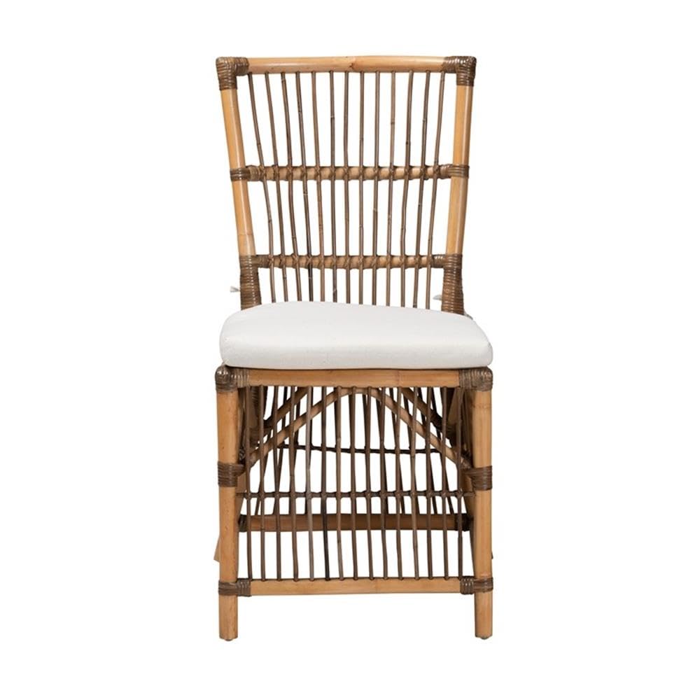 Baxton Studio Kim Modern Bohemian White Fabric and Natural Brown Rattan Dining Chair