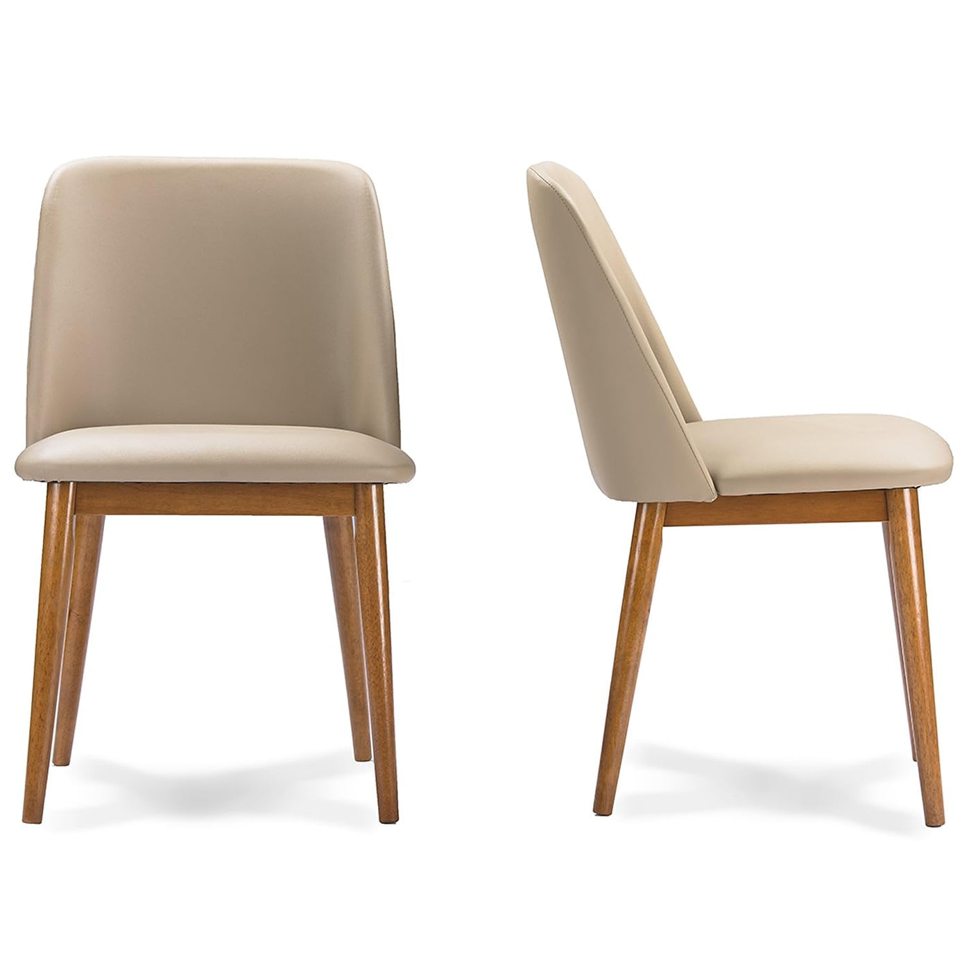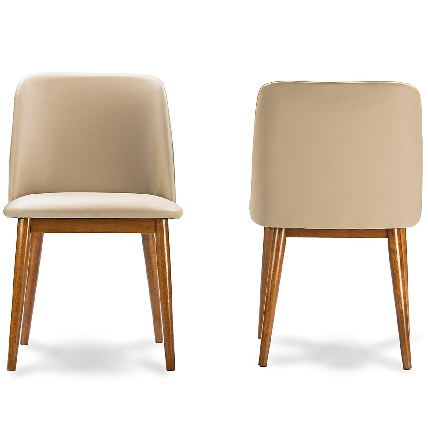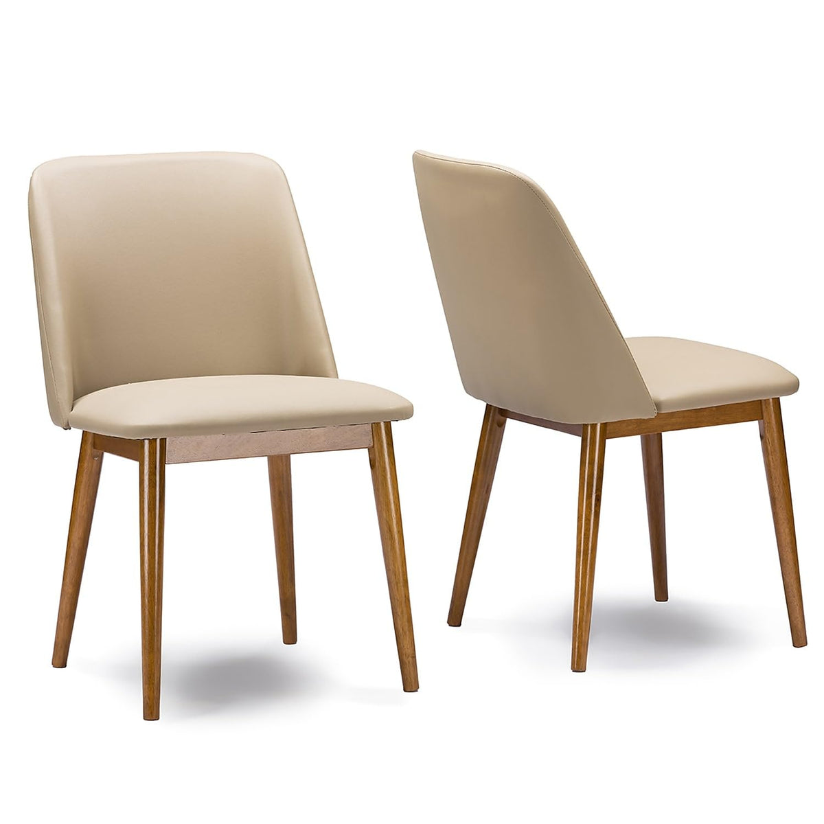 Baxton Studio Lavin Mid-Century Faux Leather Dining Chair, Walnut Light Brown And Beige, 2/Set (115-2Pc-6135-Ht)