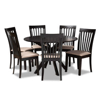 Baxton Studio Lore Modern and Contemporary Sand Fabric Upholstered and Dark Brown Finished Wood 7-Piece Dining Set
