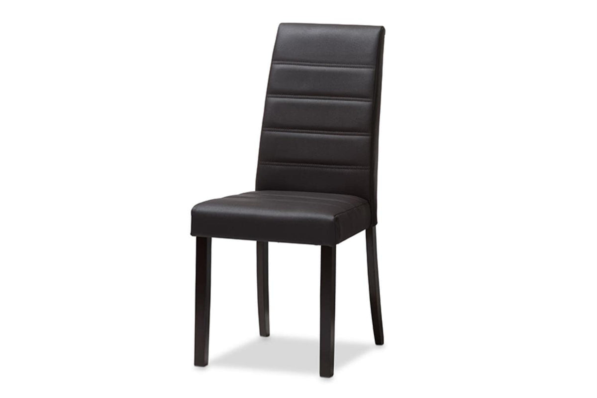 Baxton Studio Lorelle Modern and Contemporary Brown Faux Leather Upholstered 5-Piece Dining Set Brown//Medium Wood/Contemporary/Table/Faux Leather/Rubber Wood/Foam