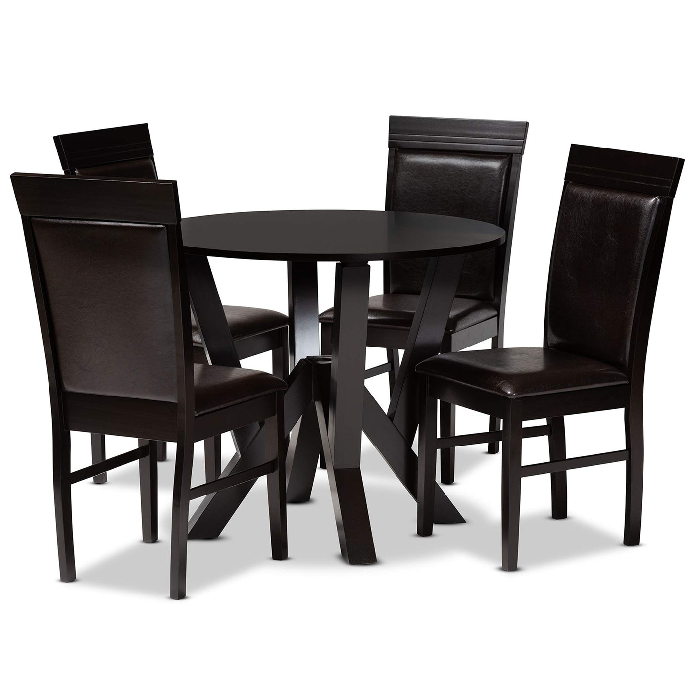 Baxton Studio Nada Modern and Contemporary Dark Brown Faux Leather Upholstered and Dark Brown Finished Wood 5-Piece Dining Set