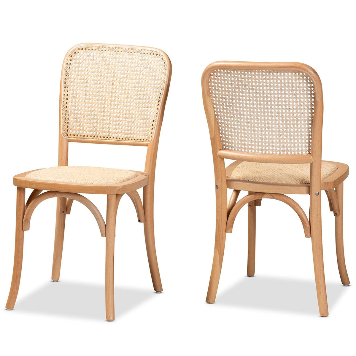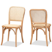 Baxton Studio Neah Mid-Century Modern Brown Woven Rattan and Wood 2-Piece Cane Dining Chair Set