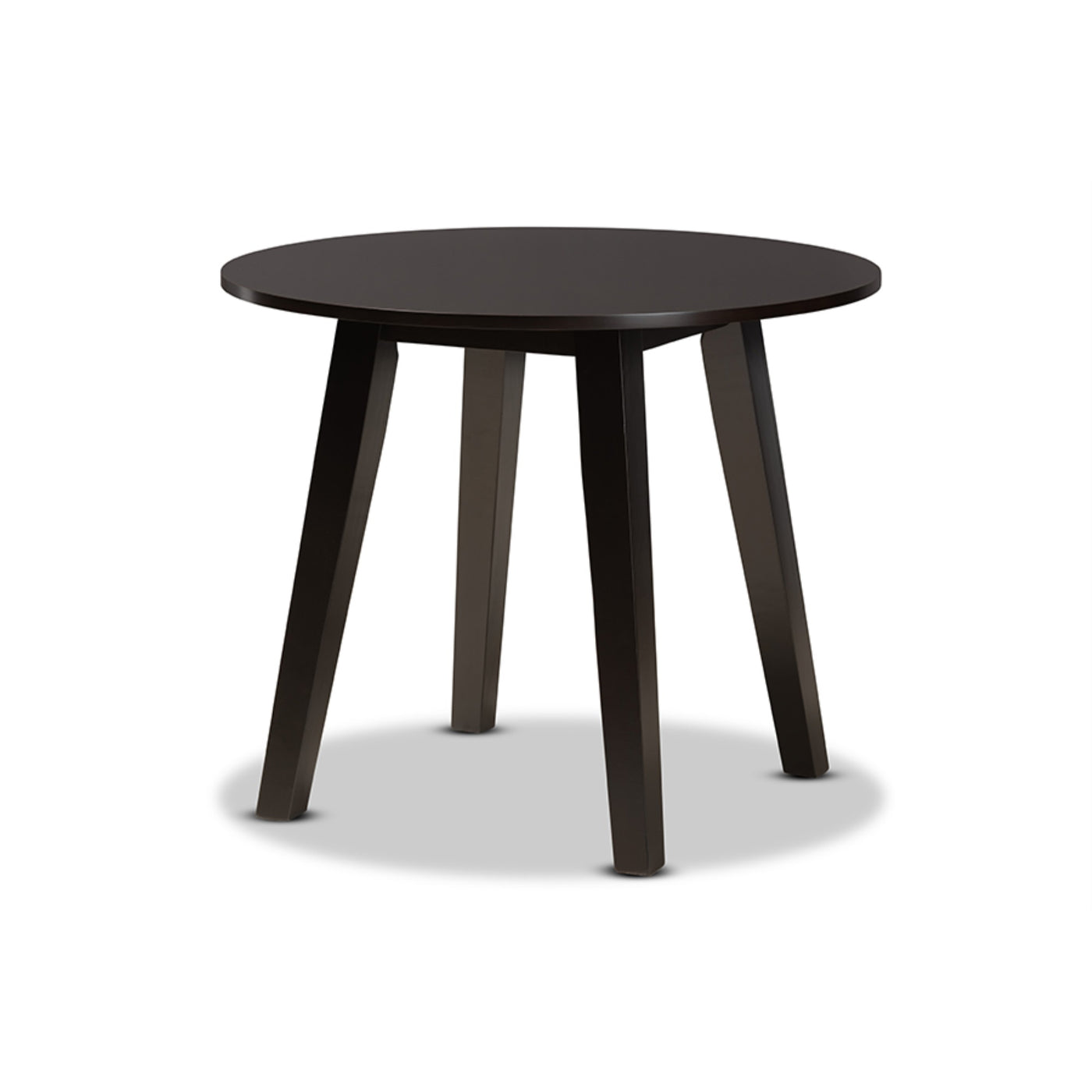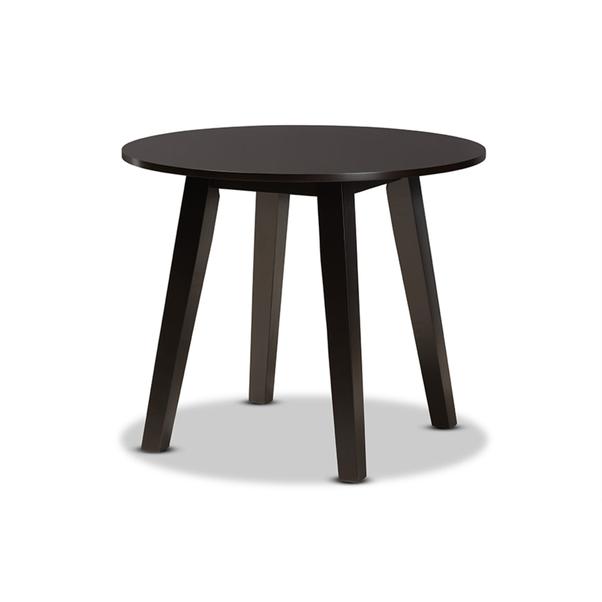Add crisp, contemporary design to your dining space with the visually striking Rava dining set. Made in Malaysia, this wooden set includes four dining chairs and one dining table showcasing a distinctive two-tone dark brown and walnut brown finish. Each chair features a unique, geometric cut out design for added visual appeal, while a scoop seat lends casual comfort. Requiring assembly, the circular tabletop provides ample elbow room for each member of the table. Perfect for both casual and formal dining, the Rava dining set is an excellent addition to the modern home.Features :- Set includes four (4) dining chairs and one (1) table- Constructed from oak wood, rubberwood, and engineered wood- Two-tone dark brown and walnut brown finish- Smooth scoop seat- Cut-out back design- Circular tabletop- Assembly required.Specifications :- Product Dimensions : 29.9" high x 35.4" wide x 35.4" deep; Legs: 29.1" high; Chair 37.4" High x 17.9" Wide x 19.9" Deep; Seating 17.70" High (from floor) x 17.9" Wide x 15.7" Deep; Back: 19.7" High; Legs: 16.90" High;.
