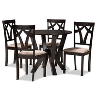 Baxton Studio Reagan Modern and Contemporary Sand Fabric Upholstered and Dark Brown Finished Wood 5-Piece Dining Set