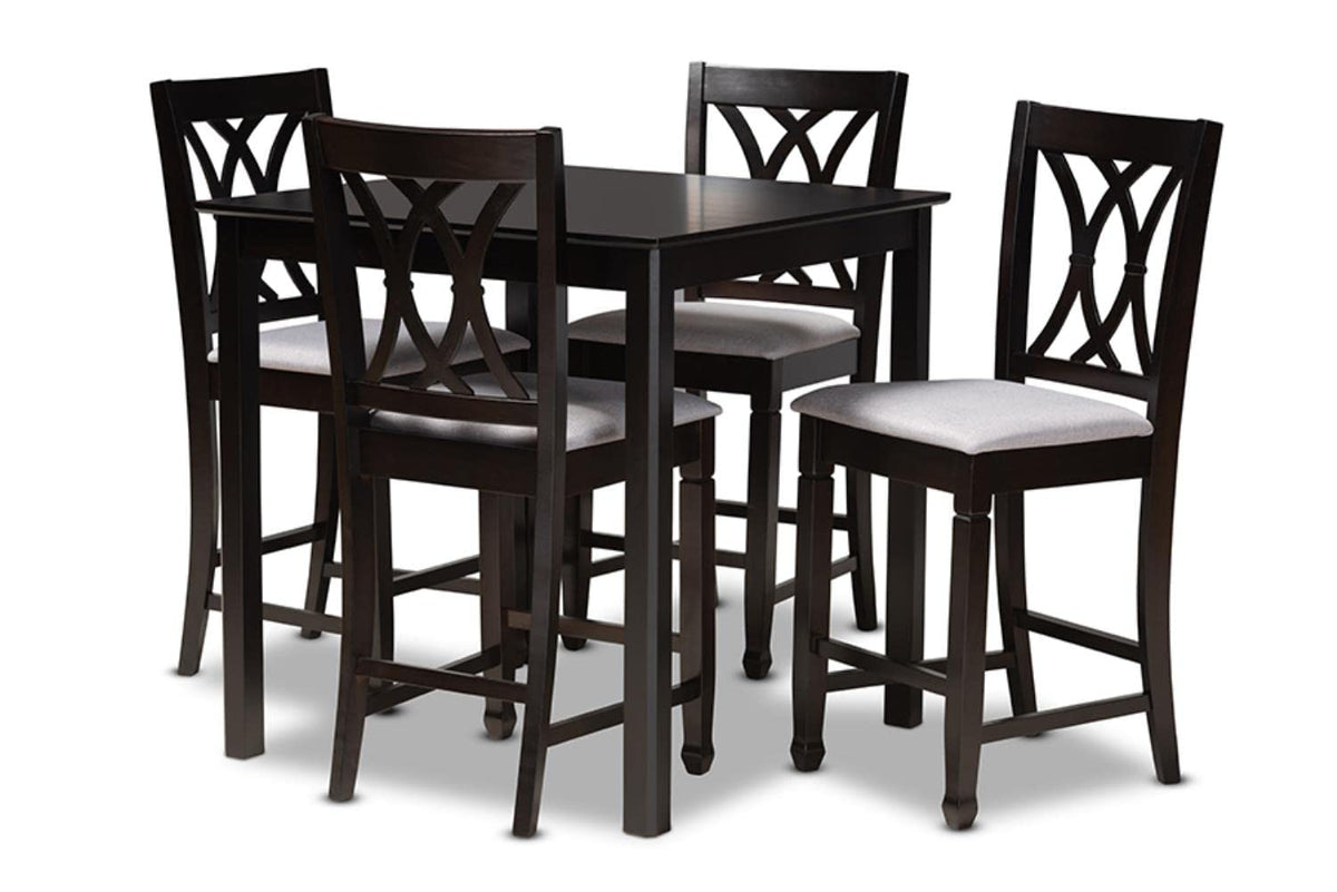 Baxton Studio Reneau Modern and Contemporary Gray Fabric Upholstered Espresso Brown Finished 5-Piece Wood Pub Set