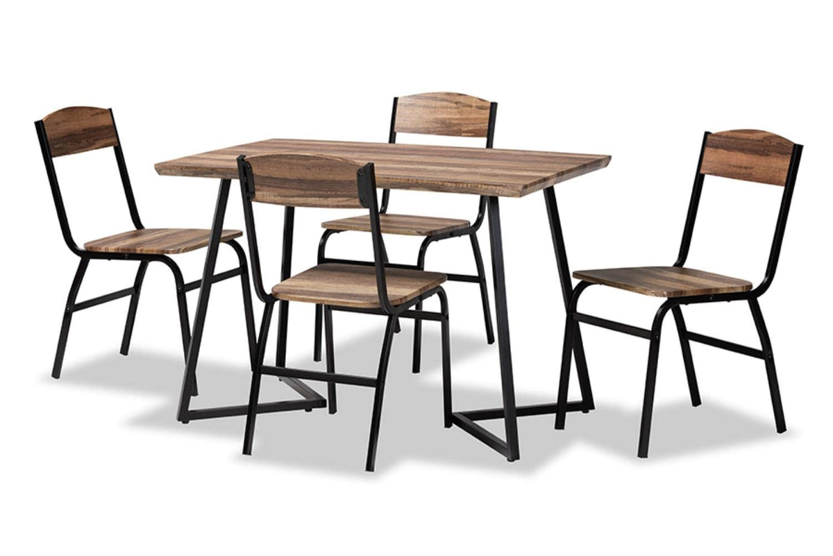 Baxton Studio Roana Modern and Contemporary Walnut Brown Finished Wood and Black Metal 5-Piece Dining Set
