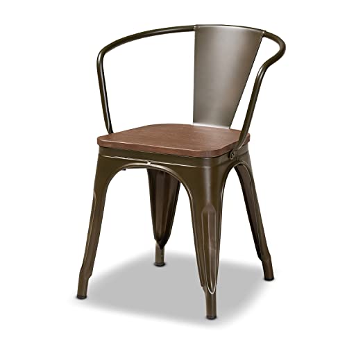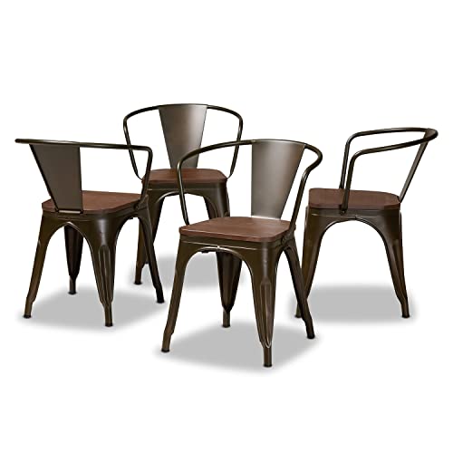 Baxton Studio Ryland Modern Industrial Brown Metal and Walnut Brown Finished Wood 4-Piece Dining Chair Set