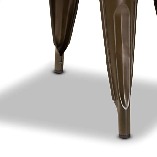 Give your dining room a chic, industrial feel with the Ryland dining chair. Made in China, this set includes four chairs composed of a metal frame fitted with a flat walnut brown finish wooden seat. Its curved backrest forms comfortable armrests while its open design allows light to flow more easily throughout the room. The Ryland will arrive fully assembled and is placed on top of angled legs for excellent stability and support. The rugged style and soft comfort of the Ryland dining chair are sure to elevate any dining experience. Features: - Industrial set includes four (4) dining chairs - Constructed from - Flat wooden seat Curved backrest - Angled legs - Fully assembled. Made in China. Specifications: - Product Dimensions: Overall dimensions: 28.00 inches high x 20.70 inches wide x 19.70 inches deep; Seat Dimensions: 17.50'H (from floor) x 14.00'W x 12.60'D; Arm: 24.00 inches tall; Legs: 15.40 inches tall; Back: 10.80 inches high.