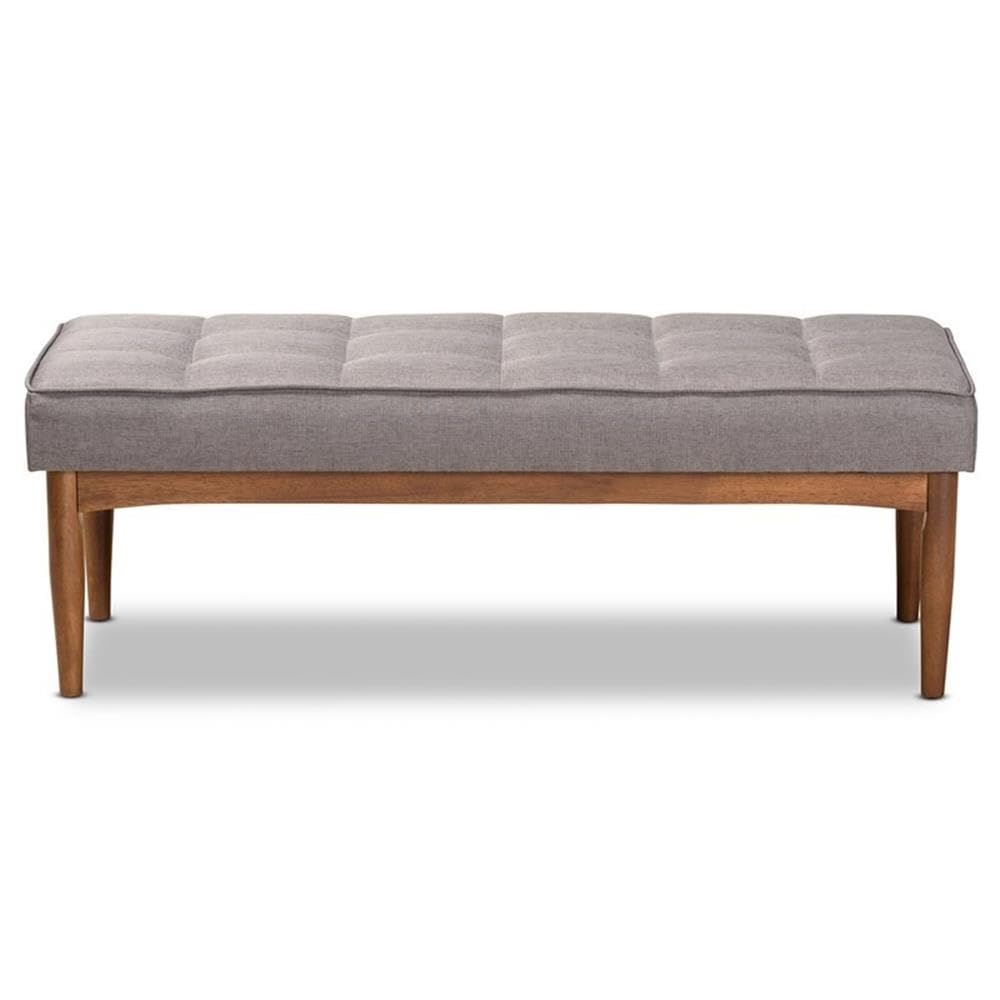Baxton Studio Sanford Mid-Century Modern Grey Fabric Upholstered and Walnut Brown Finished Wood Dining Bench