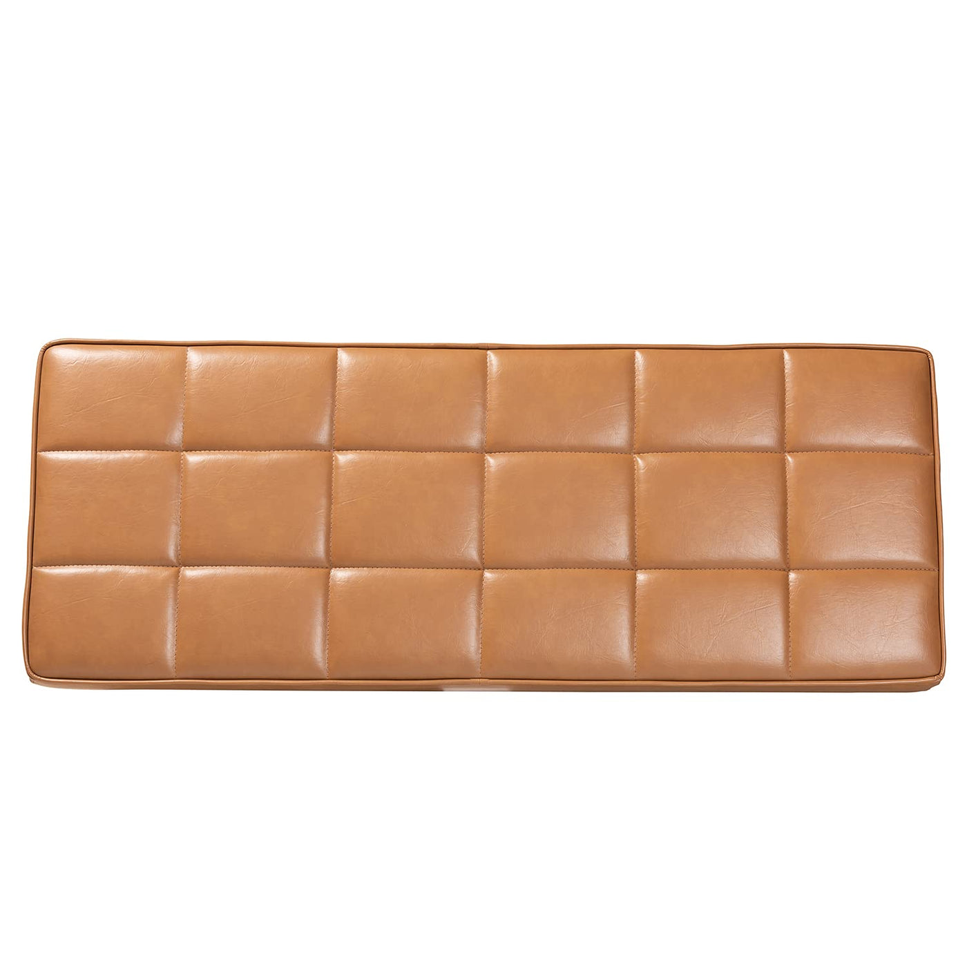 Introduce casual comfort to meals with the Sanford dining bench. Made in Malaysia, the Sanford is constructed from walnut brown finished wood that radiates natural warmth. The seat is padded with soft foam and upholstered in tan faux leather for smooth comfort in eye catching style. Requiring assembly, the Sanford utilizes a biscuit tufted design for texture and depth with a modern touch. Angled, tapered legs complete the look. An ideal choice for smaller dining rooms and nooks, the Sanford dining bench rejuvenates any space.