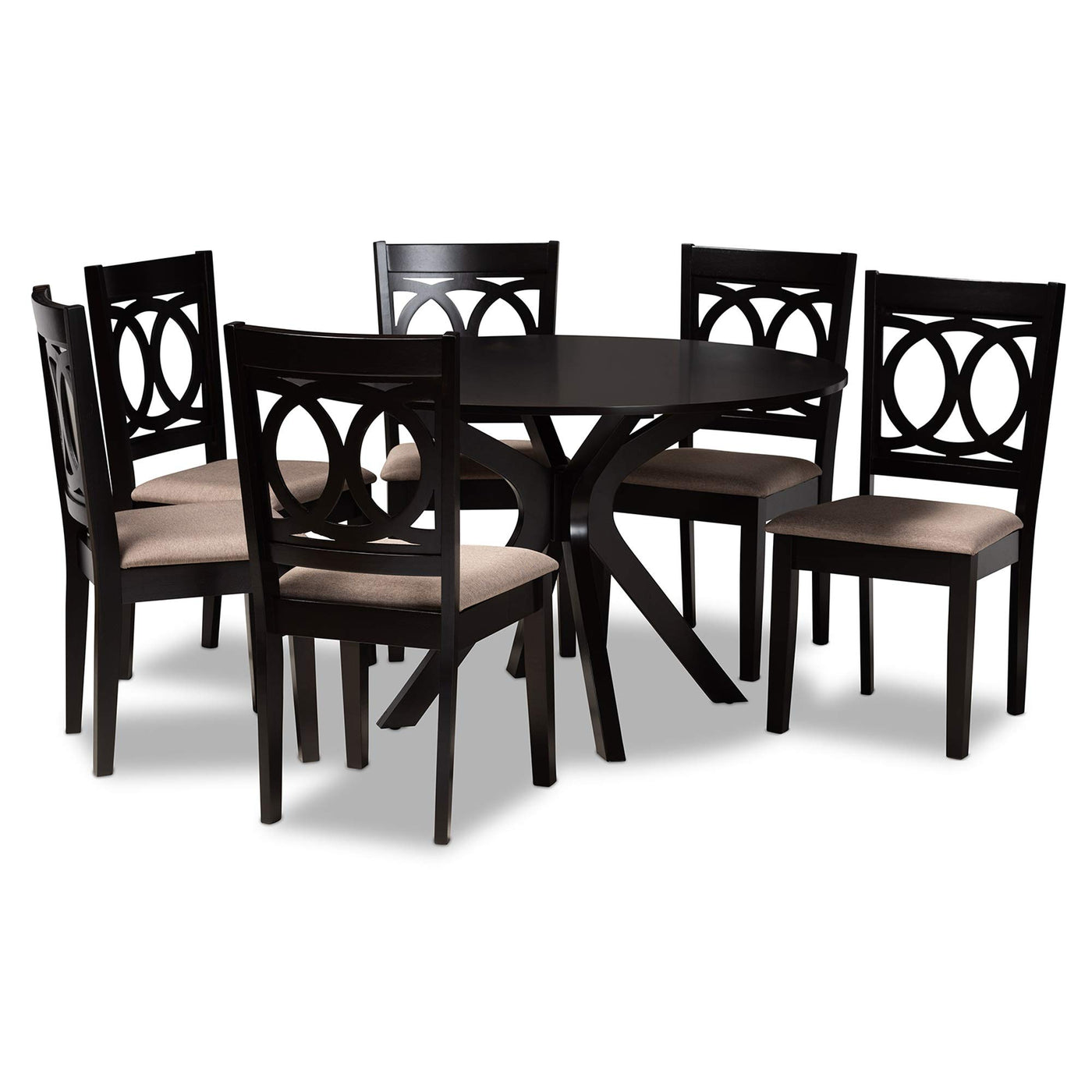 Baxton Studio Sanne Modern and Contemporary Sand Fabric Upholstered and Dark Brown Finished Wood 7-Piece Dining Set