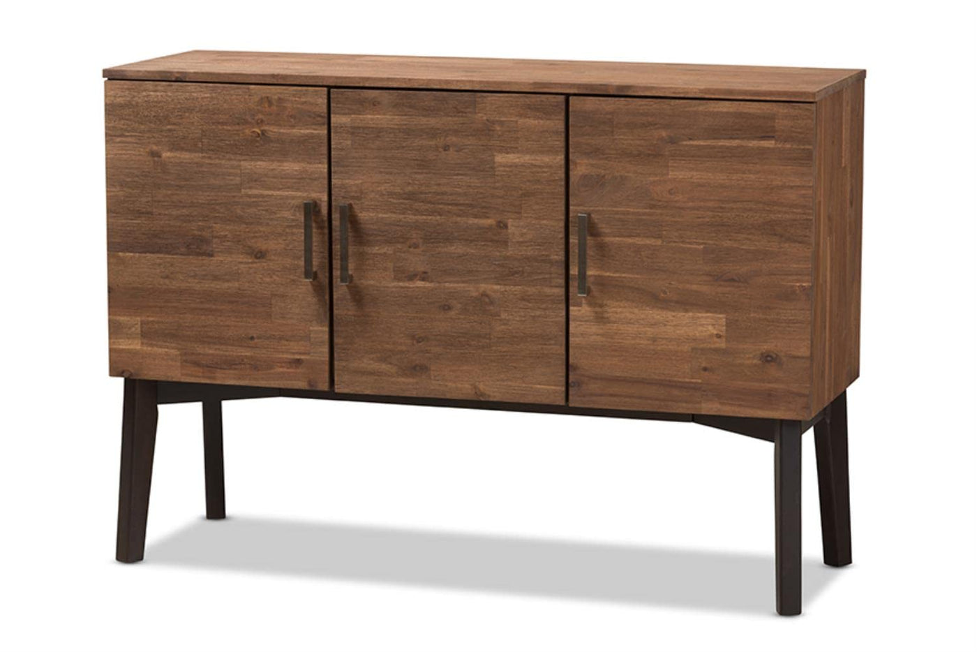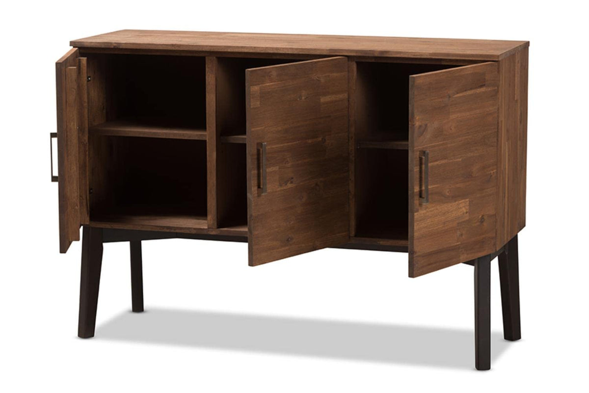 Baxton Studio Selena Mid-Century Modern Brown Wood 3-Door Sideboard Buffet