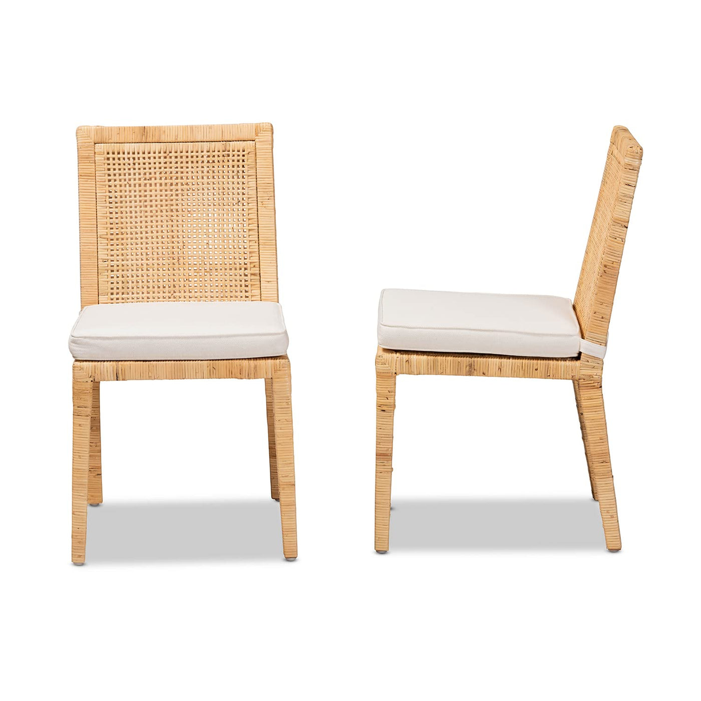 Baxton Studio Sofia Modern and Contemporary Natural Finished Wood and Rattan 2-Piece Dining Chair Set