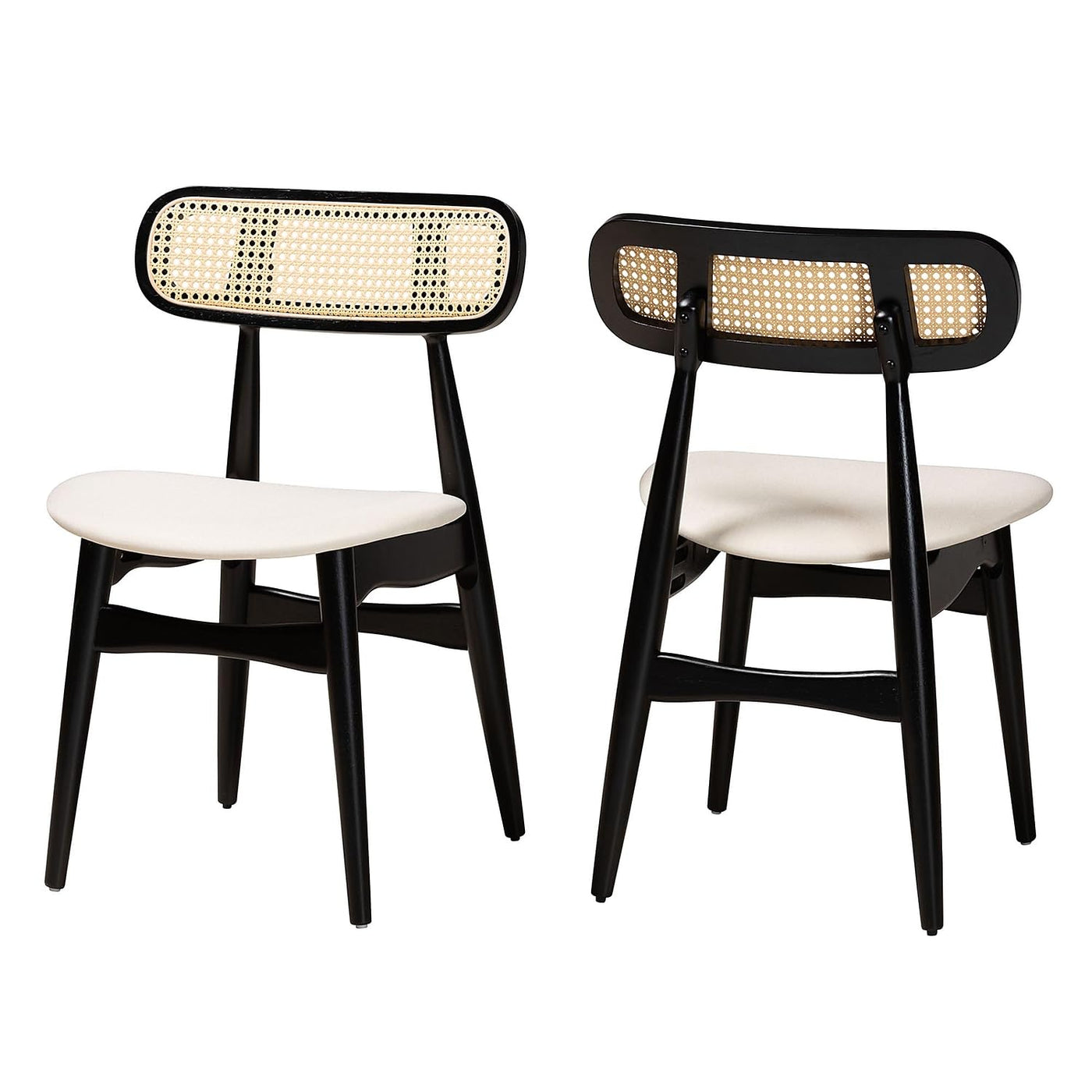 Compose an arrangement of traditional refinement in your space with the charming Tarana dining chair. Made in Malaysia, this mid-century piece consists of a sturdy wood frame embellished with woven rattan. The rounded seat is padded with plush foam and upholstered in soft fabric for superb dining comfort while the curved backrest provides a smooth embrace. The Tarana requires assembly and features tapered legs for excellent stability and support in sleek design. Evoking classic elegance, the Tarana dining chair adds rich character to any occasion.
