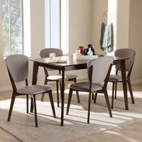 Baxton Studio Tarelle Mid-Century Modern Walnut-Finished Light Grey Fabric Upholstered 5-Piece Dining Set Grey//Medium Wood/Mid-Century/Table/Fabric Polyester 100%'/Rubber Wood/Foam