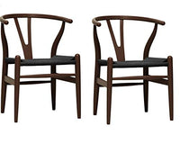 Baxton Studio Wishbone Chair/Brown Wood Y Chair with Black Seat (Set of 2)