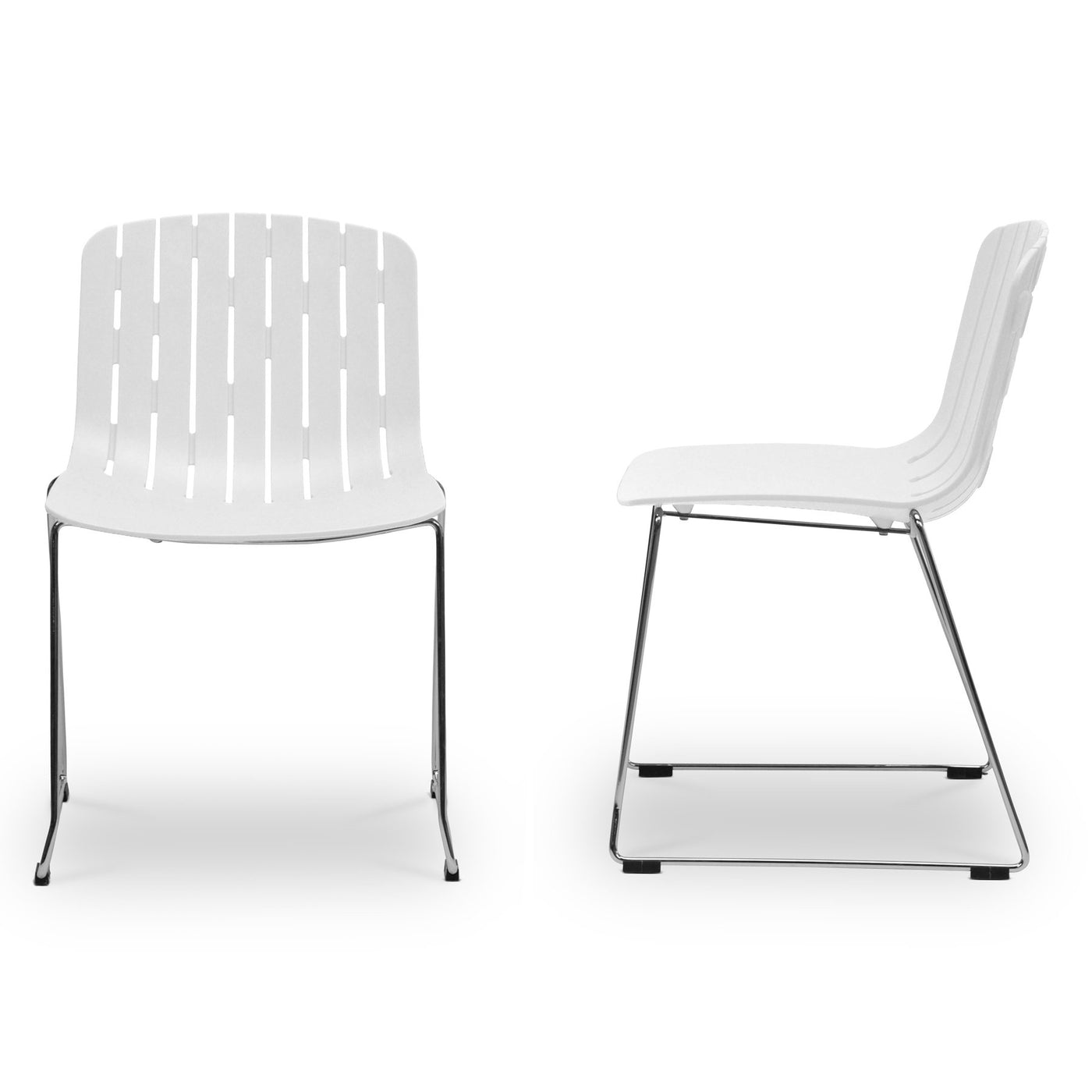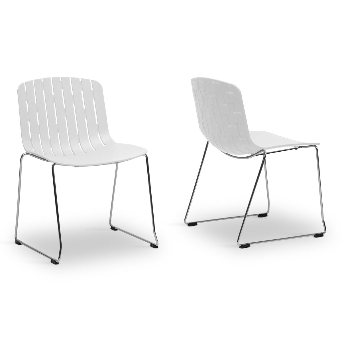 The Lively Spirit Of Our Ximena Contemporary Dining Chair Is Unapologetically Contagious! Inject Your Home With The Chic, Minimalist Character Of This White Hard Molded Plastic Stackable Dining Chair, Which Can Be Conveniently And Easily Stored Away In A Corner Or A Closet. Chrome-Plated Steel Serves As A Stylish Yet Sturdy Base And Is Finished Off With Black Plastic Non-Marking Feet. Easily And Quickly Clean Up Messes By Wiping The Chair With A Damp Cloth. This Set Of Two Dining Chairs Comes Packaged In A Cardboard Carton And Is Fully Assembled. Also Available Is The Ximena Dining Chair In Orange As Well As The Similar Florissa Dining Chair In Black Or Red (Sold Separately). 20.5 "W X 23"D X 31"H, Seat: 19.5"W X 16.5"D X 18.875"H.