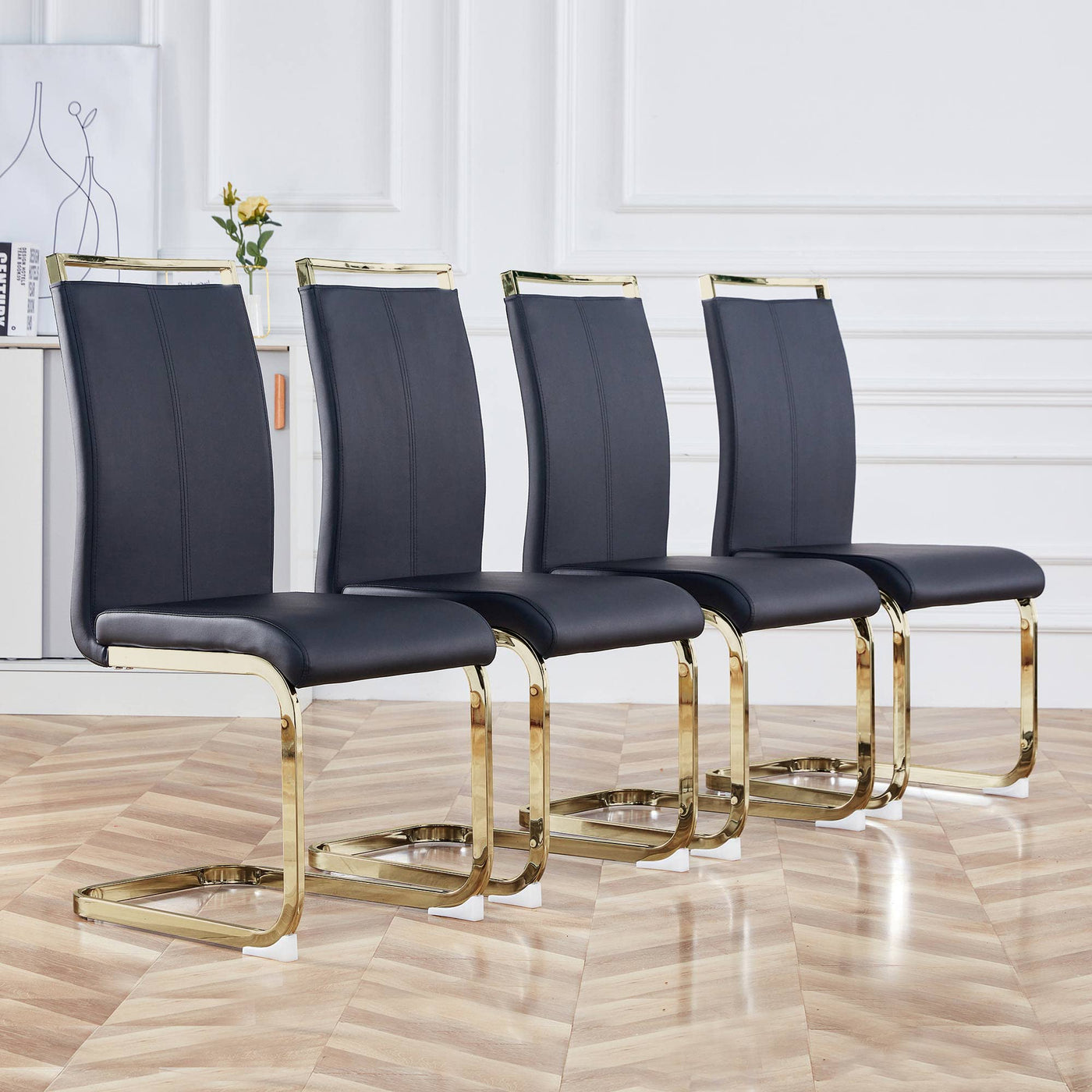 Baysitone Modern Dining Chairs Set Of 4, Side Dining Room Chairs With Golden Legs, Kitchen Chairs With Faux Leather Padded Seat High Back For Dining, Kitchen, Living Room, Black