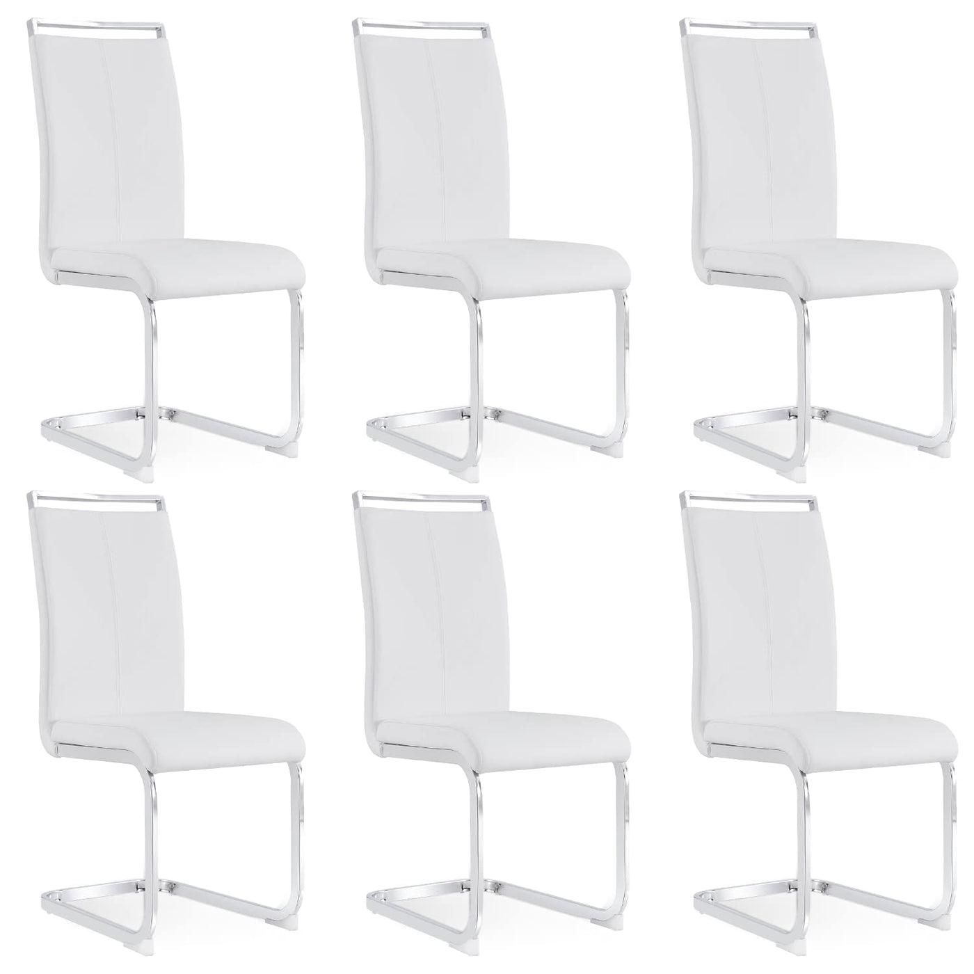 Baysitone Modern Dining Chairs Set Of 6, Side Dining Room Chairs, Kitchen Chairs With Faux Leather Padded Seat High Back, Chairs For Dining Room,Kitchen, Living Room White