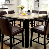 Keeping In Mind Style And Convenience, This Counter Height Table In Dark Walnut Finish With A Marble Top, Features Lean Legs And A Plain Table Top. Refine Your Living Space With This Charming Counter Height Collection. Make It A Part Of The Kitchen Or Dining To Update The Ambience. A Beautiful Gathering Space For Family And Friends For Tea And Wine. It Does Not Include Any Other Featured Product Except Counter Height Table.